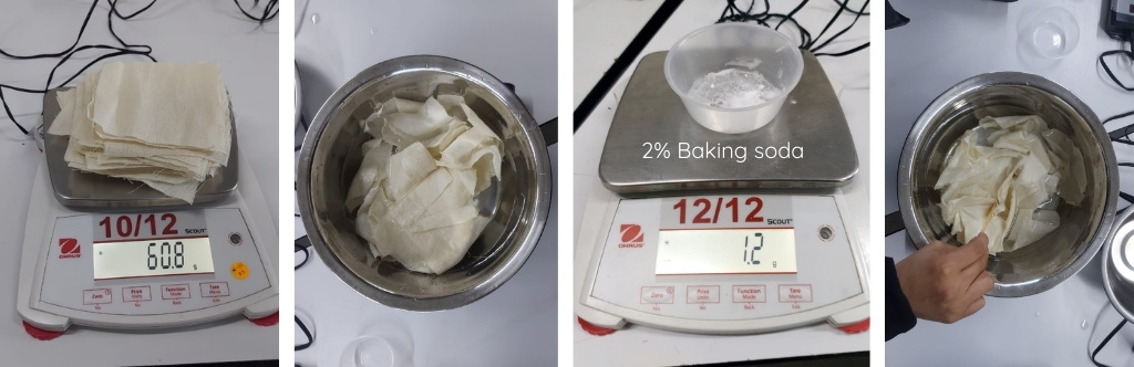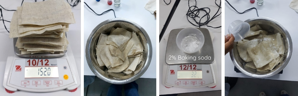 After this, we need to remove all the impurities and gumming that fabrics regularly have, we do this with baking soda and let it boil for 1 hour. The relationship is: