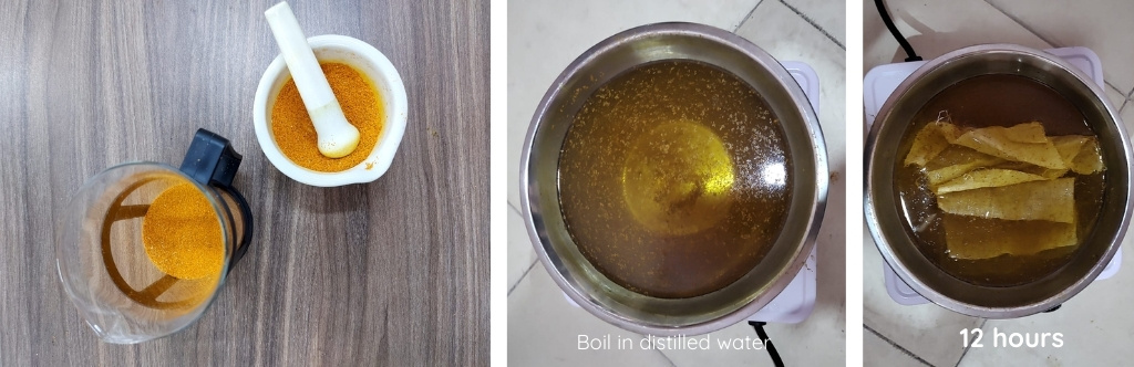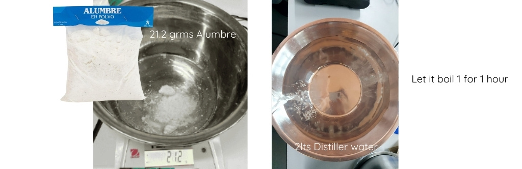 After this, we need to prepare another solution with the mordant to ensure better color fixation. We used Alum and the relation for this solution is: