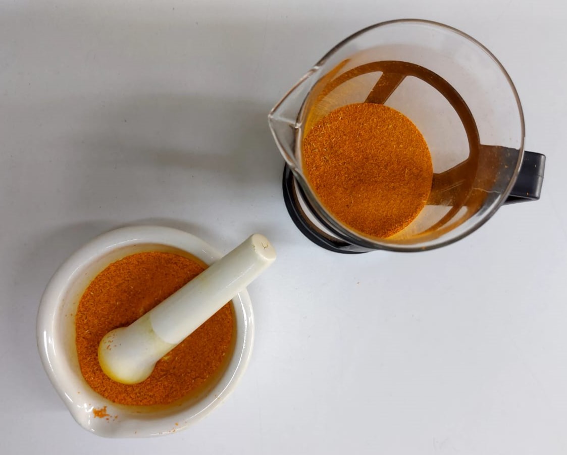 After the petals were completely dry, we began to grind them with a mortar and pestle, and to achieve a finer powder we used a grinder.