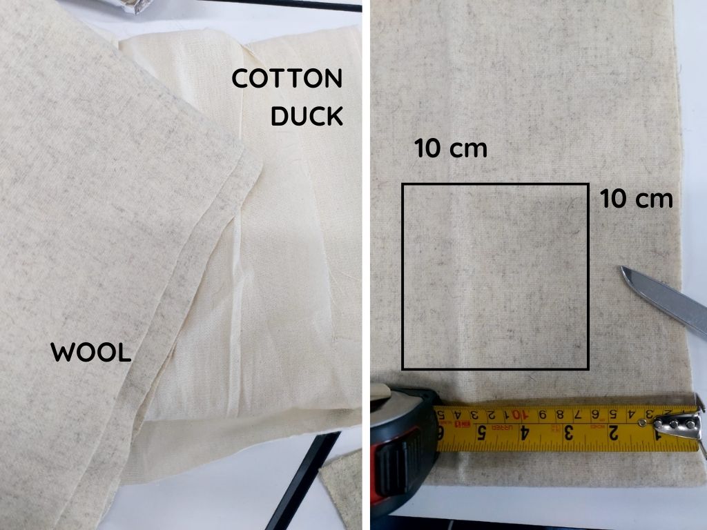- 12.6 gr wool fabric / 6.8 gr cotton fabric