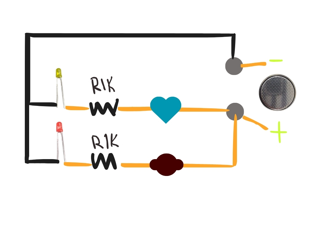 After this, I continue learning about the various components I could use to transfer energy in a circuit, and I also learn the importance of a good connections by a good soldering or sewing. For this practice, I wanted to use regular metallic objetcs as circuit brakers and buttons as well as resistors that at the same time, I learned that the importance of these components are to limit or regulate the flow of electrical current and split voltages, protecting sensitive components from overloads.