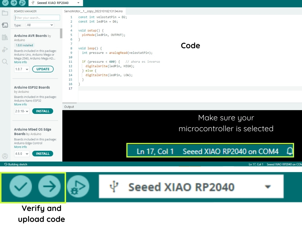 I started with basic codes to check the first LEDs were working and then I started to add the other components and finally I asked Chat GPT for a code to make the circuit work. In this work I realized the importance of resistors because the first time the intensity of one of the diode LED was too low until I exchanged it for another one, I also realized about the importance of a good sewing and I find this kind of tutorial to do it better How-to-Sew-LEDs-and-Resistors-to-Fabric