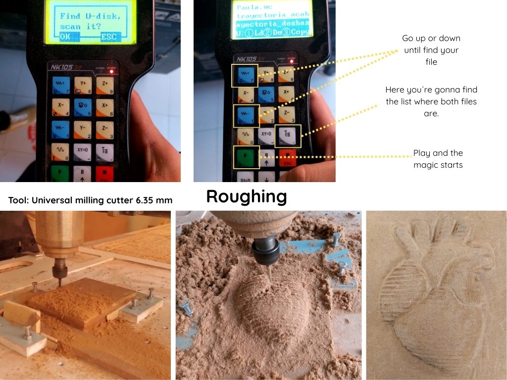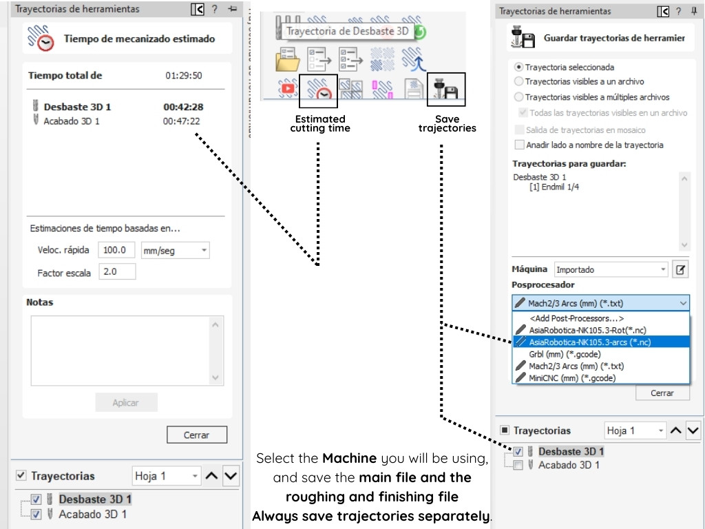 Generate G-Code, two separate files, one for roughing trajectory and another for finishing trajectory