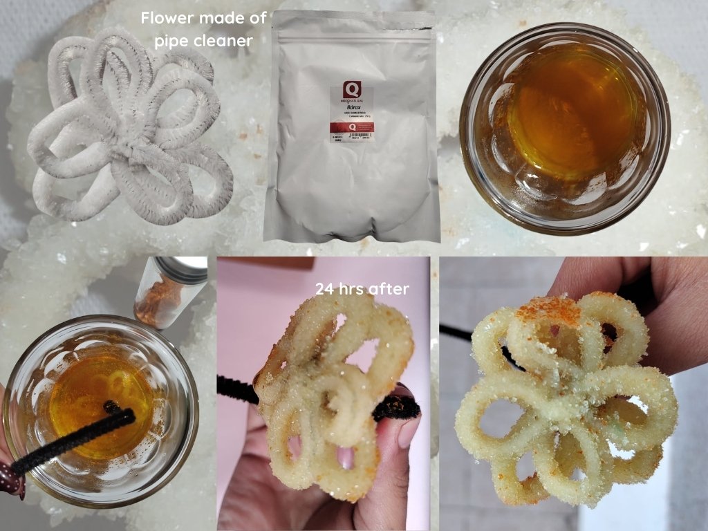 For the second attempt, I decided to use Borax decahydrate. This one, which was easier to handle and took longer to solidify and crystallize.