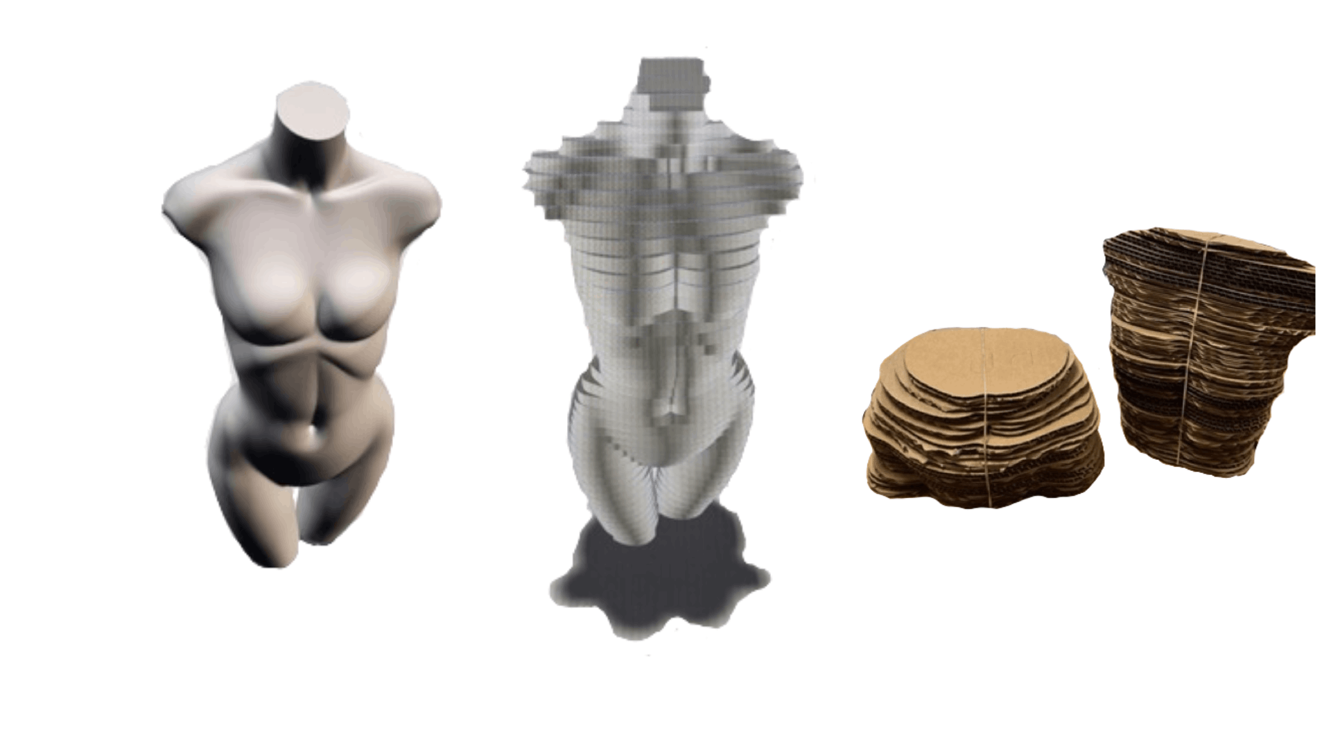 I looked online for STL files of a woman's body, that had specifically the upper body that included the neck and ending just past the top thigh. While my initial goal was to use Meshmixer to 3D print the form, I found that the process would have taken too long and after considering it wouldn’t have 100% corresponded with my concept of constructing.