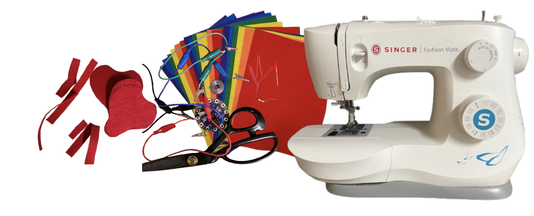 This week’s experimentation required a combination of digital tools, electronic components, and manual work. The LilyPad Arduino board, resistors, conductive thread, LED lights, clips, and USB cord were the main supplies I used. Additionally, I used LilyPad software and the Arduino IDE to program and test my circuit.
