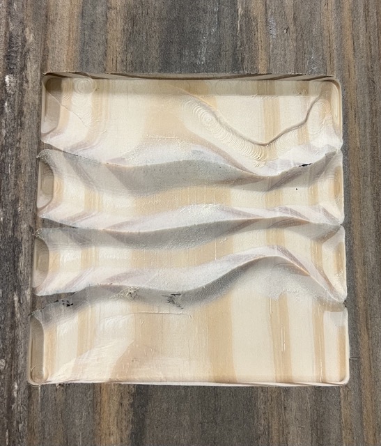I used the CNC machine for the first time, and I'm happy with the outcome. The wave geometry was properly rendered as a physical surface keeping its distinct structure by the CNC milled panel. Layered outlines that highlight the surface are made clear by the grooves.
