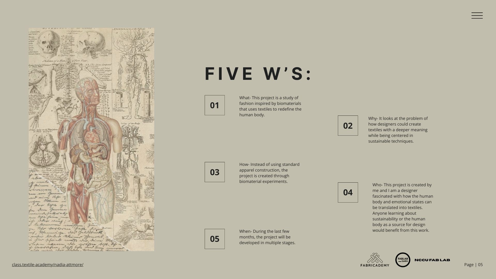 Who- This project is created by me and I am a designer fascinated with how the human body and emotional states can be translated into textiles. Anyone learning about sustainability or the human body as a source for design would benefit from this work.