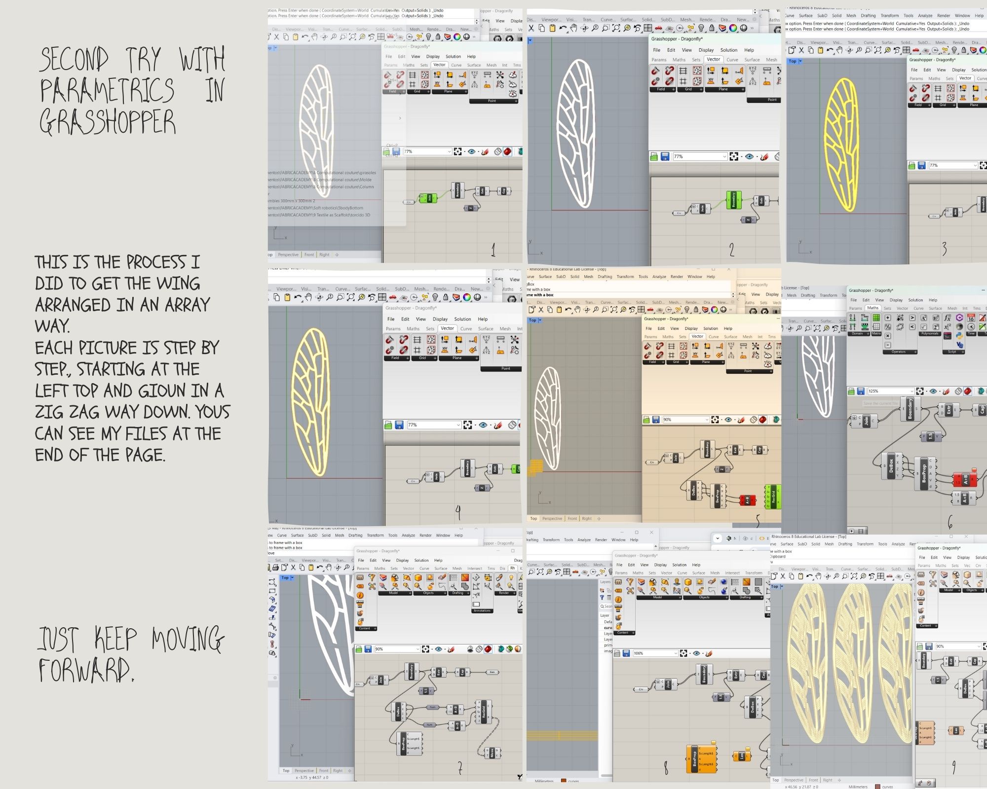 First, I looked for a dragonfly wing and the center of a sunflower, because from them I was going to replicate them in Rhino for the modelling process.