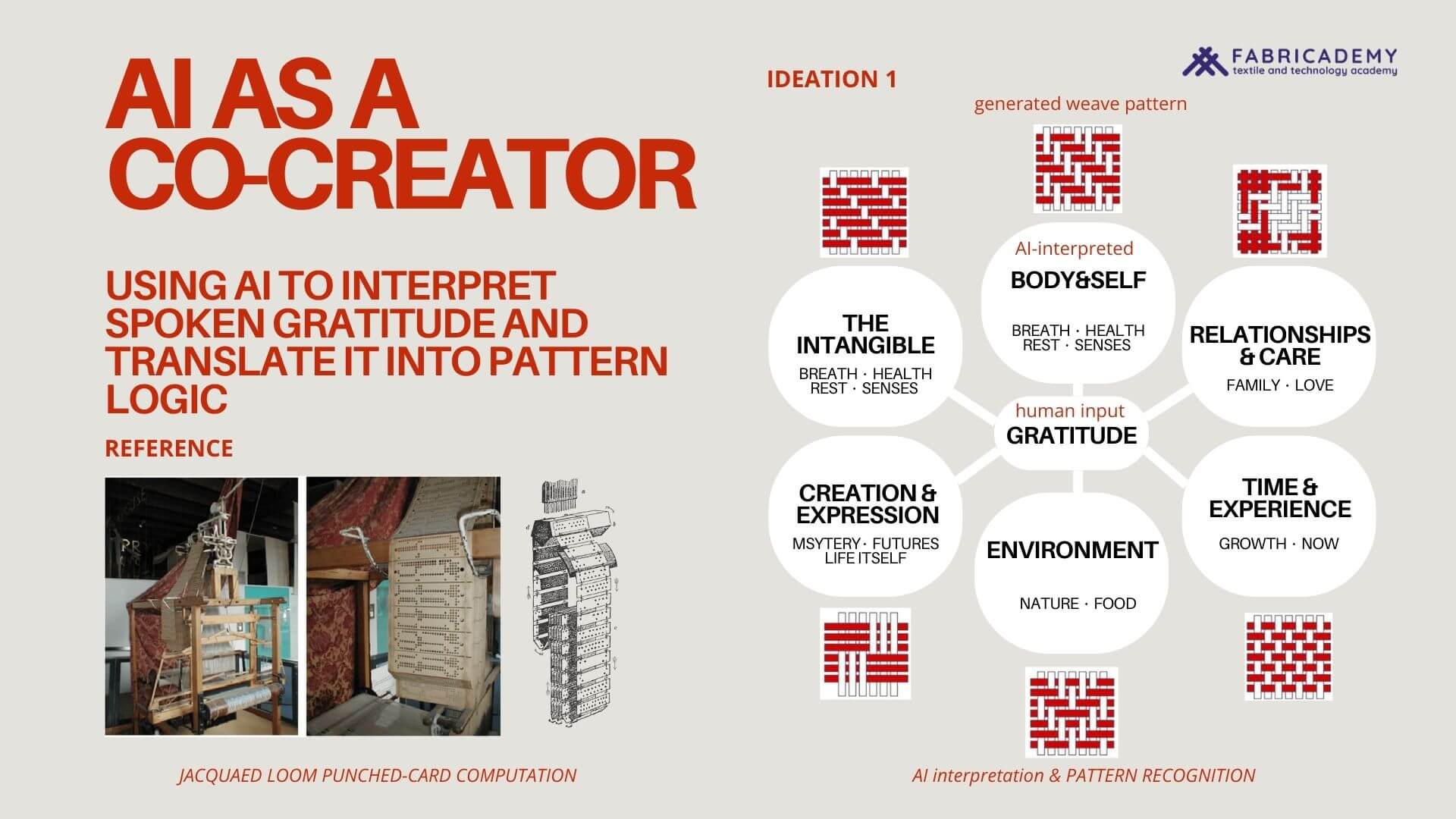 The project functions as an interactive textile interface where mind, hand, making, meaning, and machine are interconnected through a shared process rather than a fixed outcome.