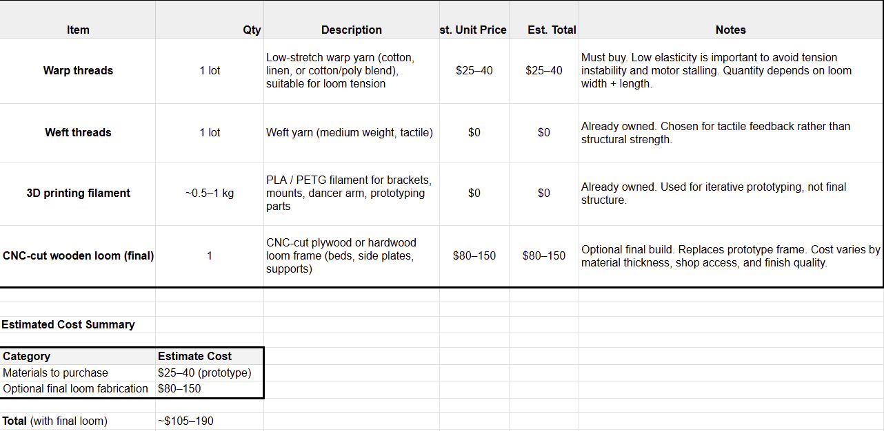 Bill of MAterials Created with Google Spreadsheet