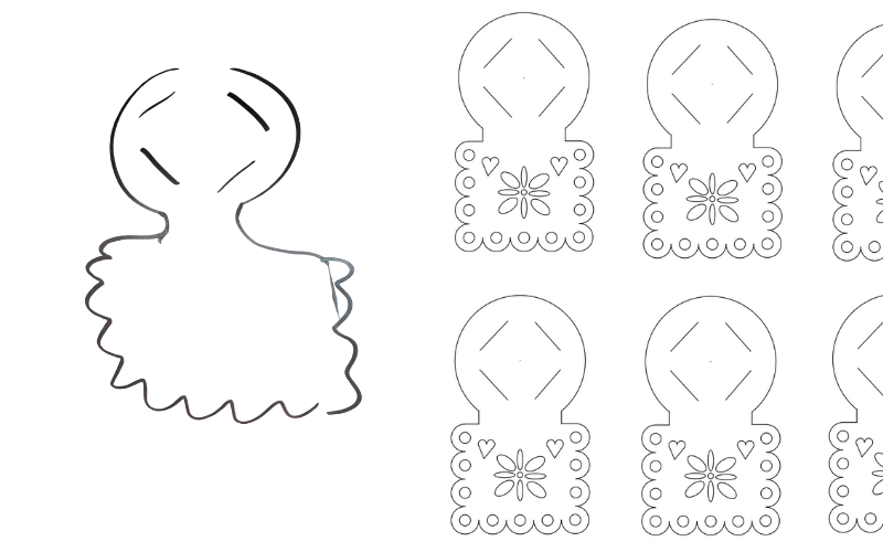 I started by sketching several silhouettes following a clear joining system: slots that would be connected with another material. Then, I traced my final silhouette in Onshape.