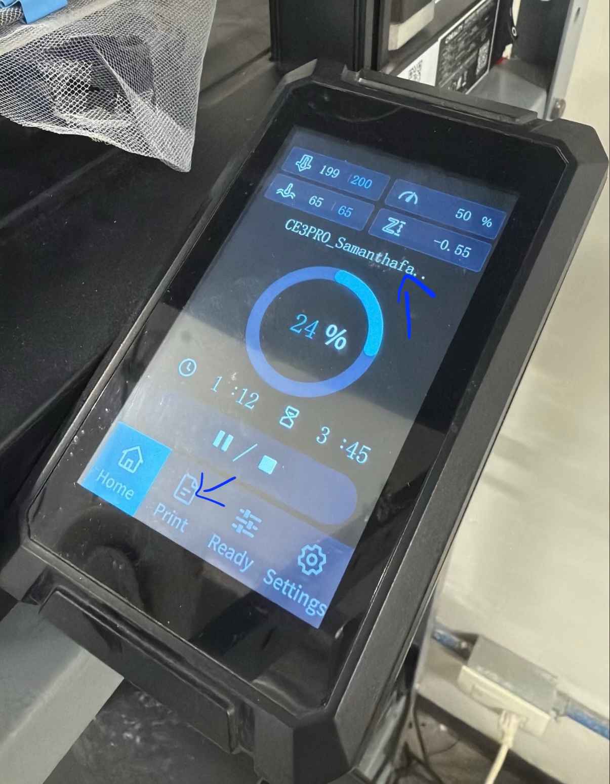 I inserted the microSD card into the machine and, under Print, searched for the file named CE3PRO_Samanthafabry.