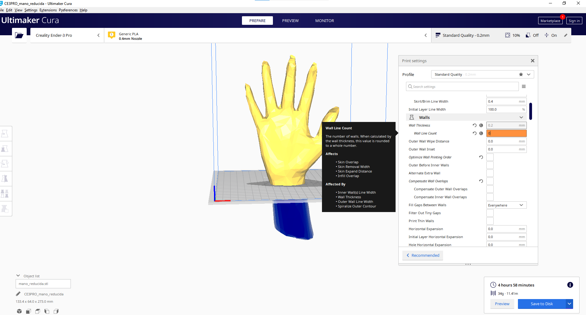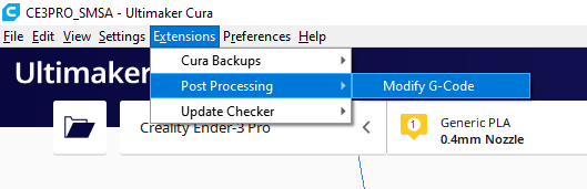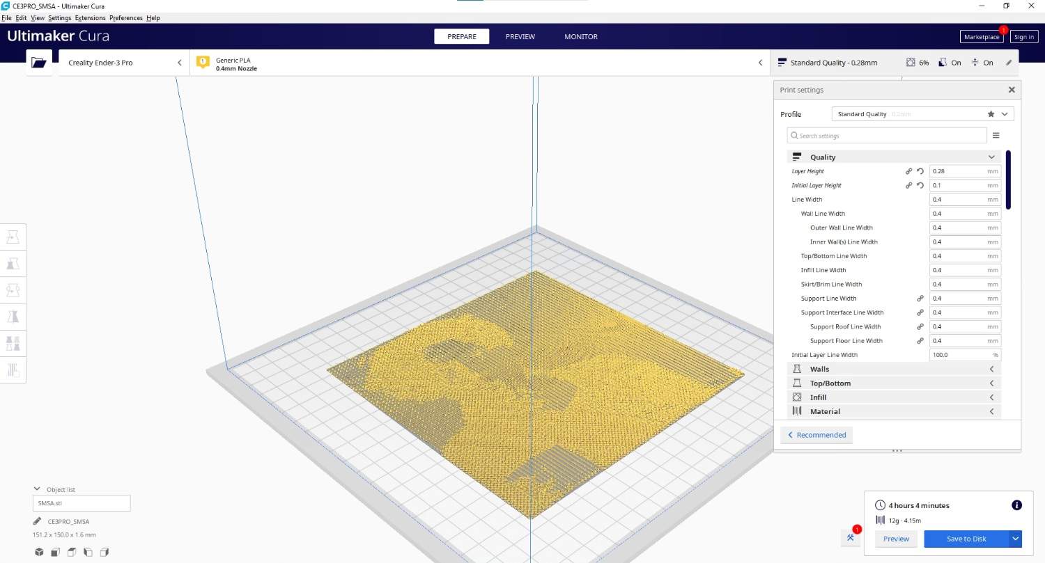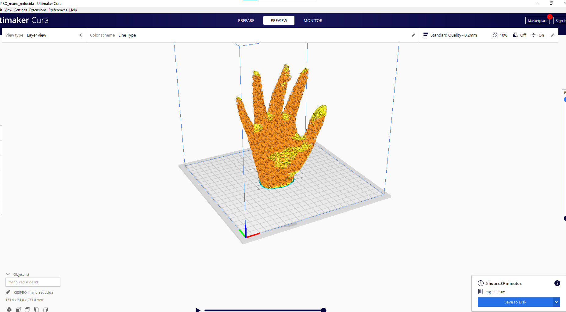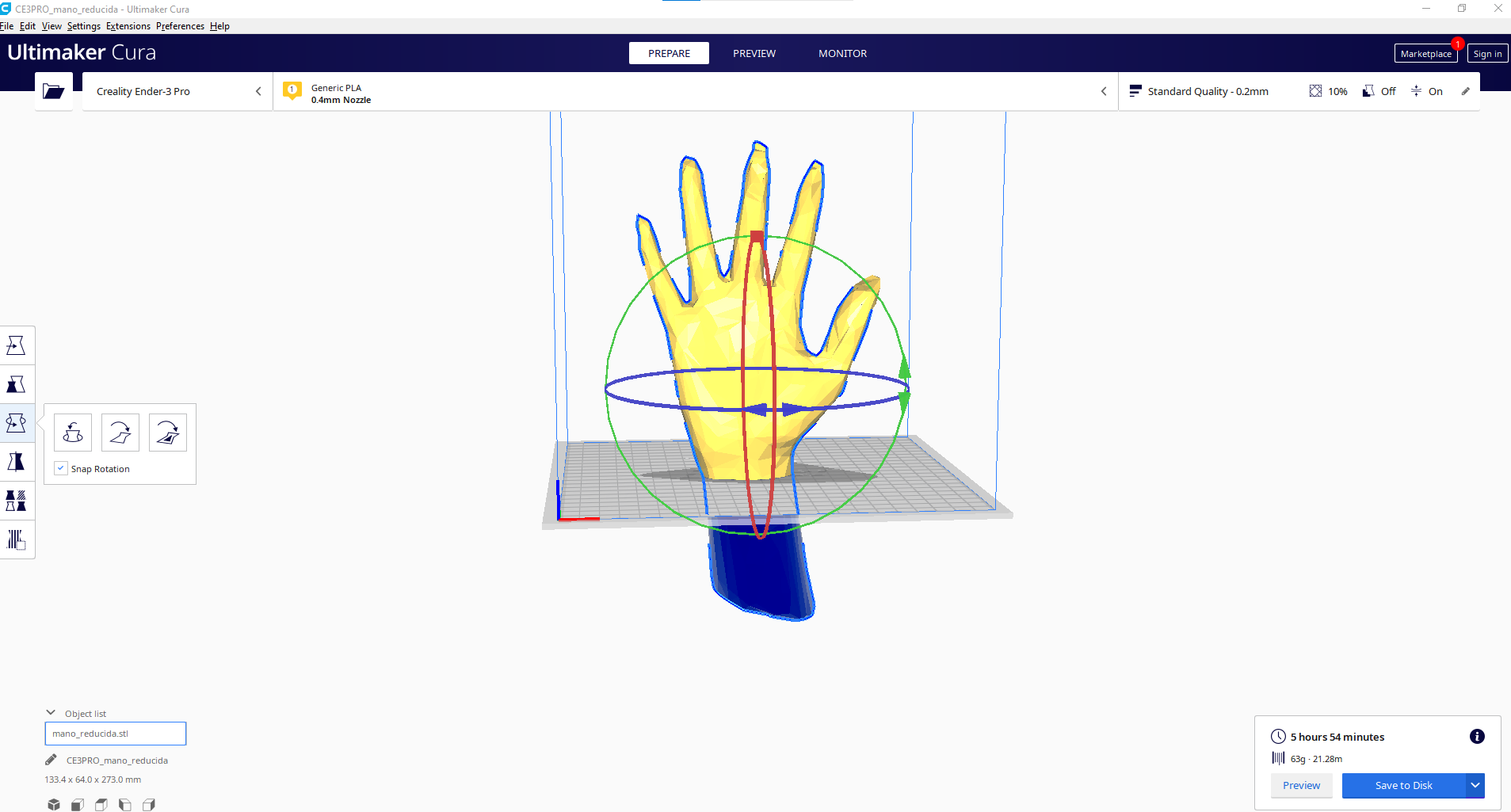 Finally, I saved the file using Save to Disk, meaning the removable SD card of the Ender printer, so I could open my G-code directly on the machine.