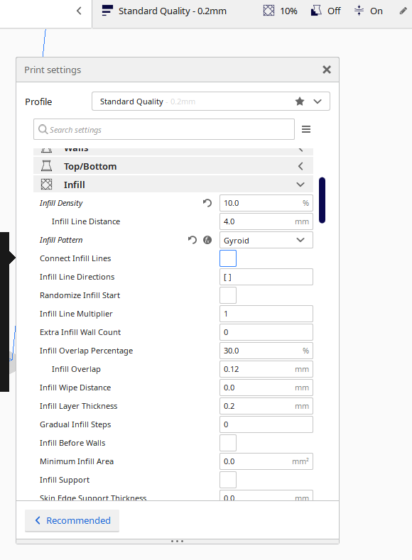 - Infill Pattern → Spiral → Infill Pattern → Spiral / Gyroid