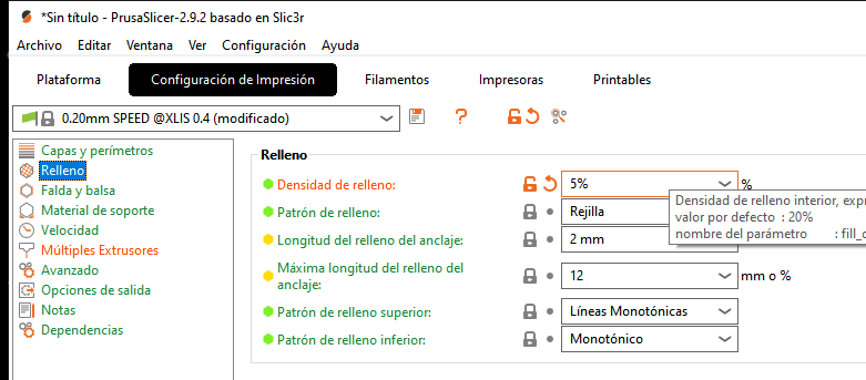 Then Print settings > Infill > Infill Density > 5%