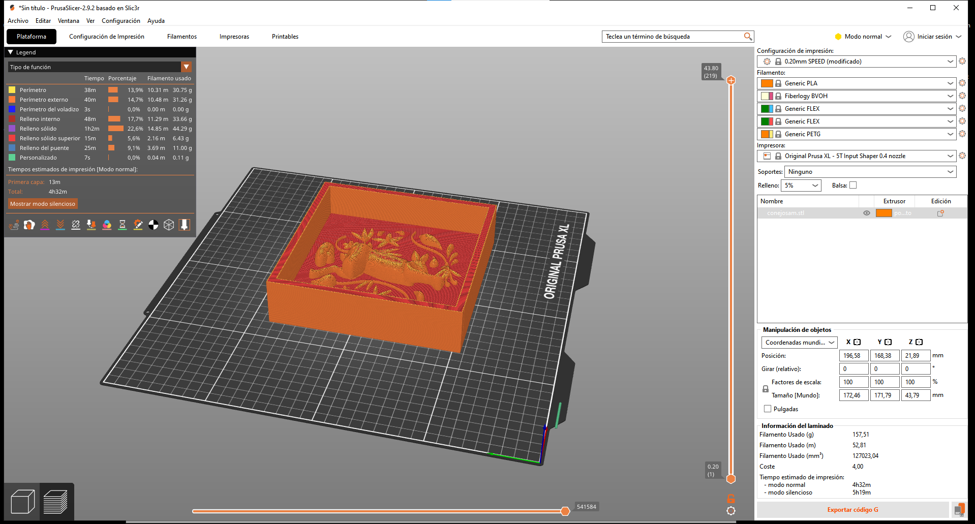I printed my mold using a Prusa XL and used its corresponding software to parametize it.