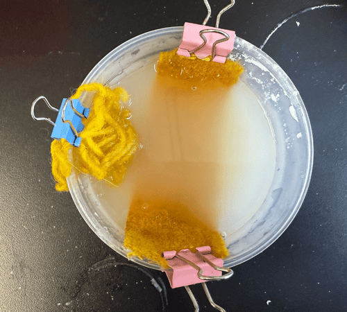 Maybe it was because of the temperature or because I didn’t hang my material properly, but the crystals didn’t really form. I’ll have to keep experimenting.