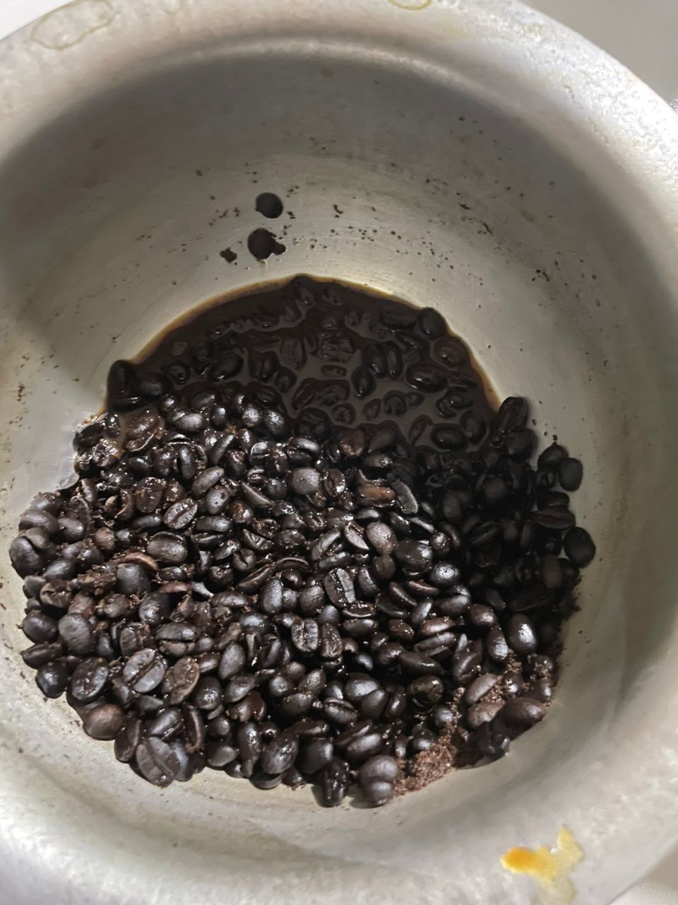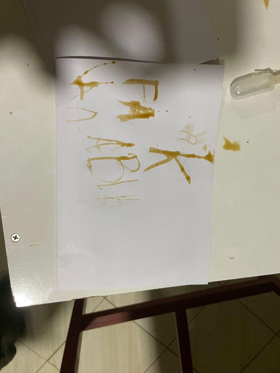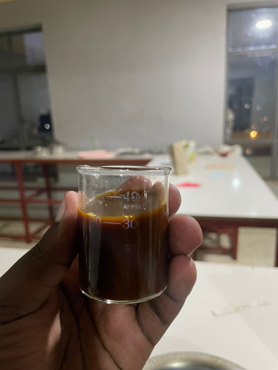 I repurposed used coffee grounds into a pigment ink by extracting their natural color with water and heat. After filtering the mixture, I added organic gum arabic as a natural binder to improve consistency and adhesion. This process allowed me to explore biofabrication through material experimentation, transforming organic waste into a functional, sustainable ink.