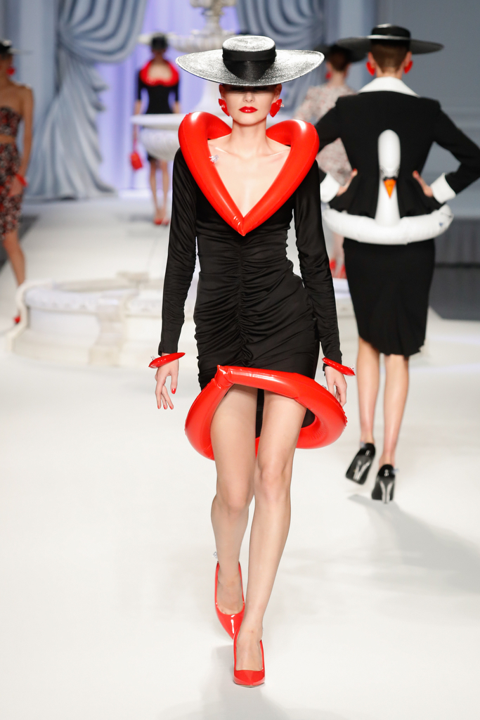 moschino Moschino spring summer 2023 ready to wear,founded in 1983 by Franco Moschino. they presented inflatable accessories and details for the Spring 2023 Collection. :Moschino’s Spring/Summer 2023 collection, “Inflation Chic,” by Jeremy Scott, humorously addressed the global economic climate by incorporating inflatable pool toys and accessories into playful, joyous runway designs.