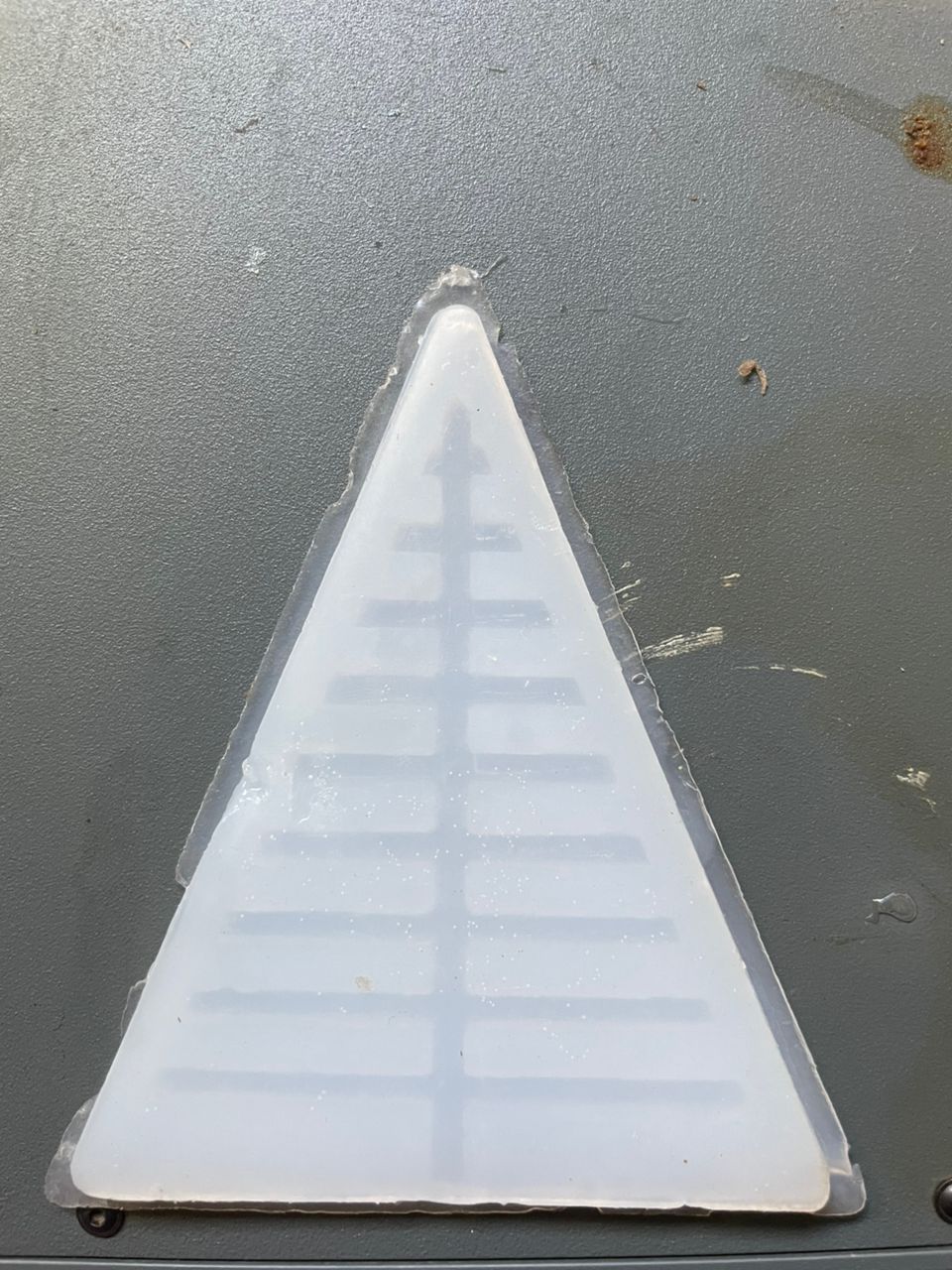 hot glued the the box to the cardboard in their current positions, then trace the bottom edges of each block with hot glue this prevents rubber from flowing into the small gaps between the block and the mold. draw lines offfset 1/4' from the base blocks, glue the walls tape-side-down on these offset lines. the wall should meet in the center and glue the end together
