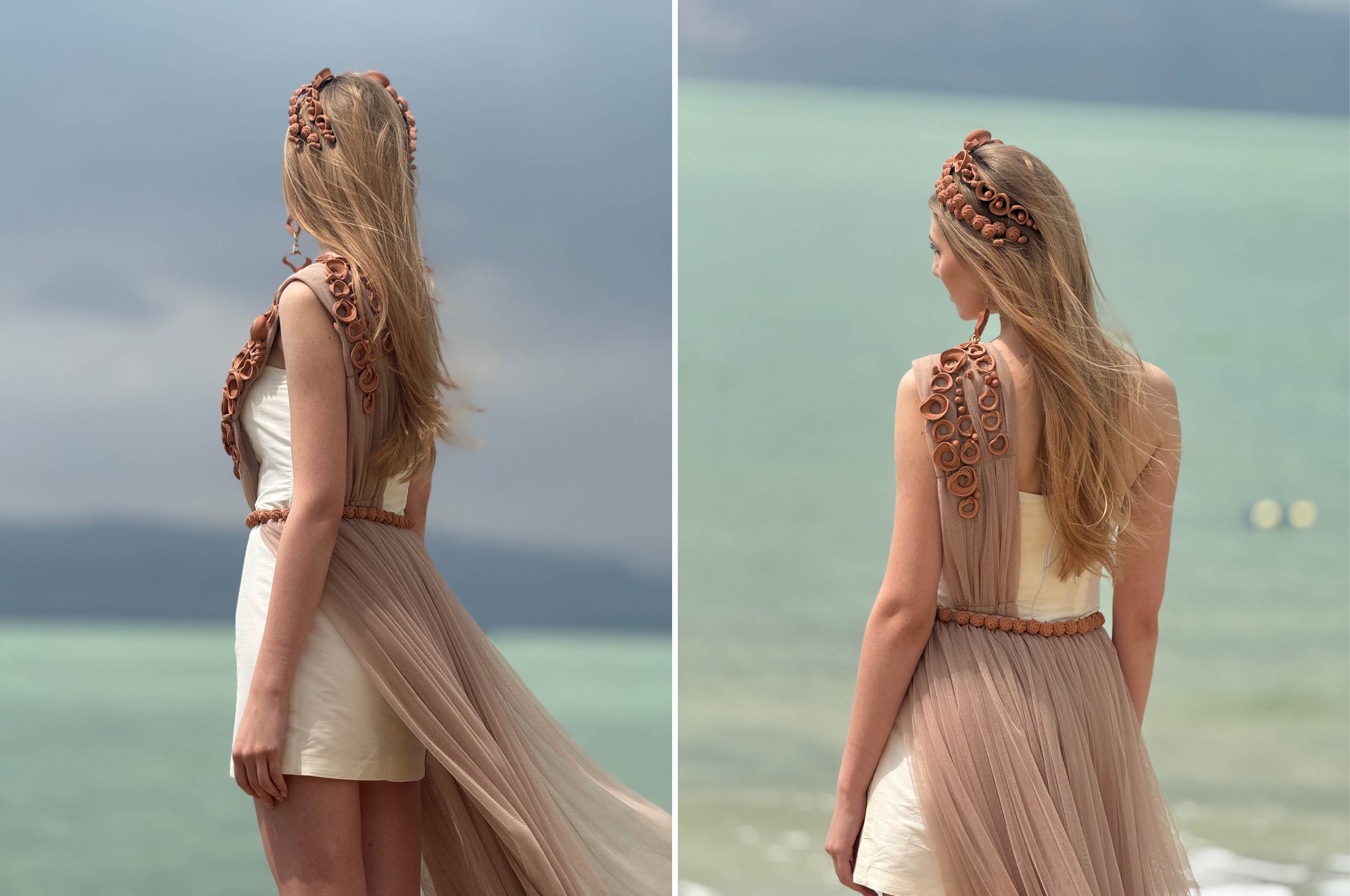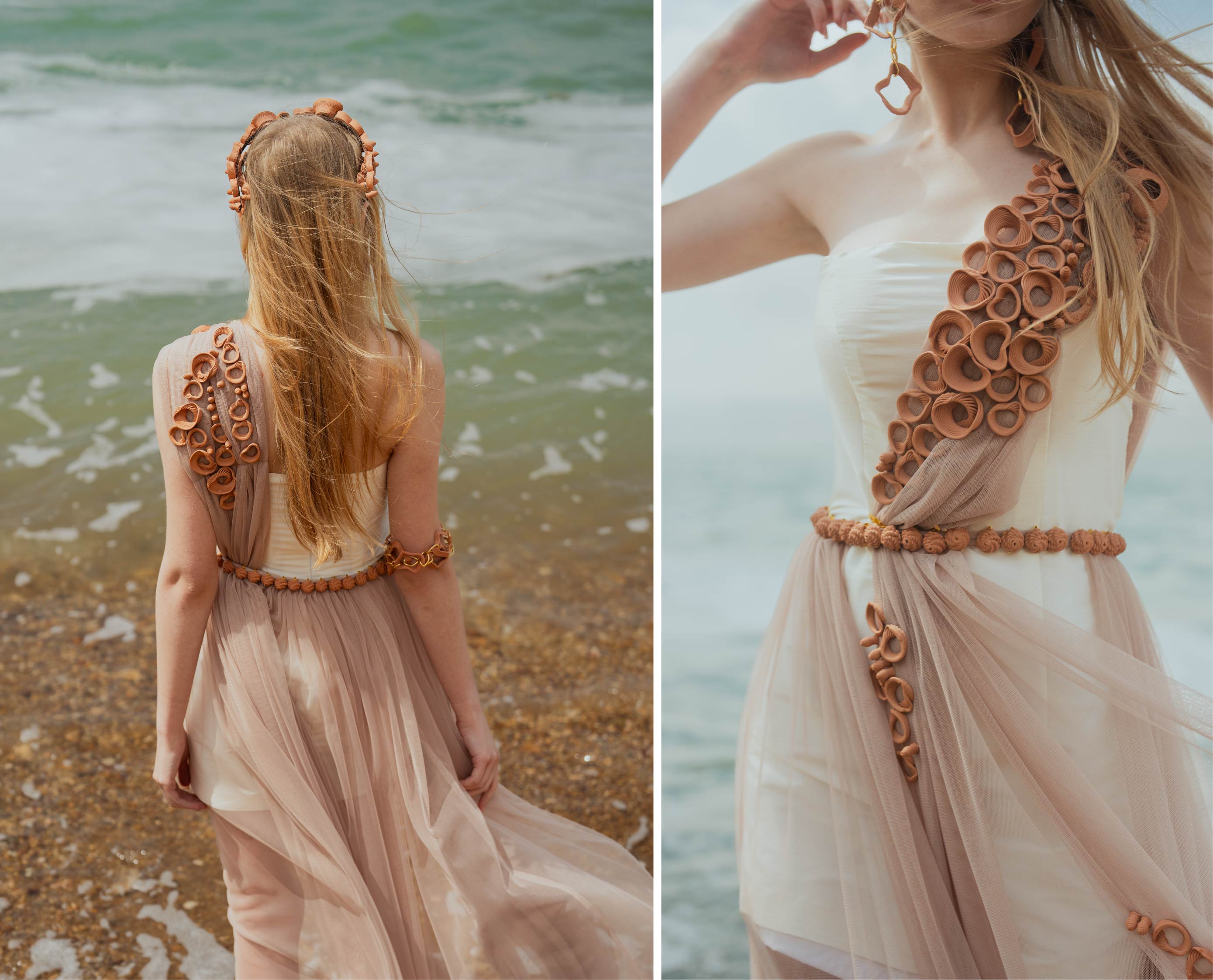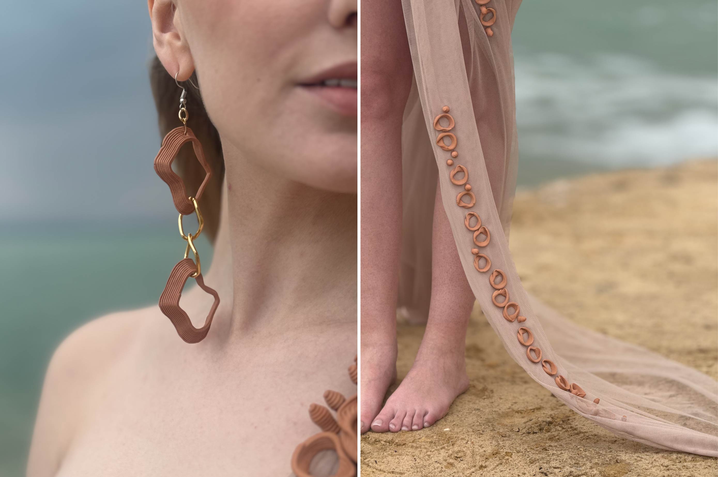 Resurrect is a ritual-based wearable project that questions human hierarchy over nature through a multi-life design approach. 3D-printed terracotta modules reinterpret ornamental fashion through a sustainable lens, worn then inhabited, transitioning from body adornment to marine habitat. Disassembled from the garment and reassembled underwater on a steel scaffold, they transform into an artificial reef ecosystem.