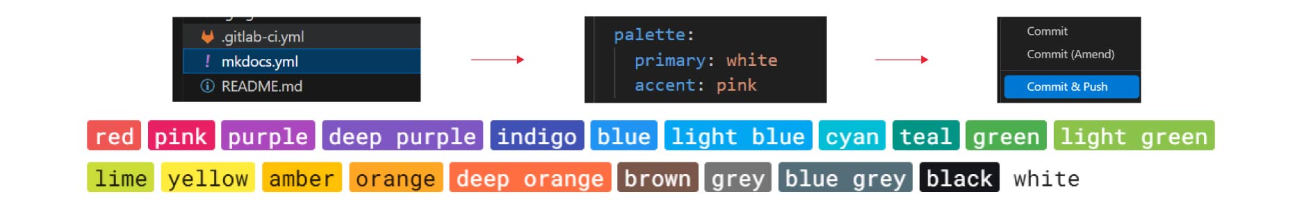 The primary color is used for the header, the sidebar, text links and several other components. In order to change the primary color, set the following value in mkdocs.yml to a valid color name: