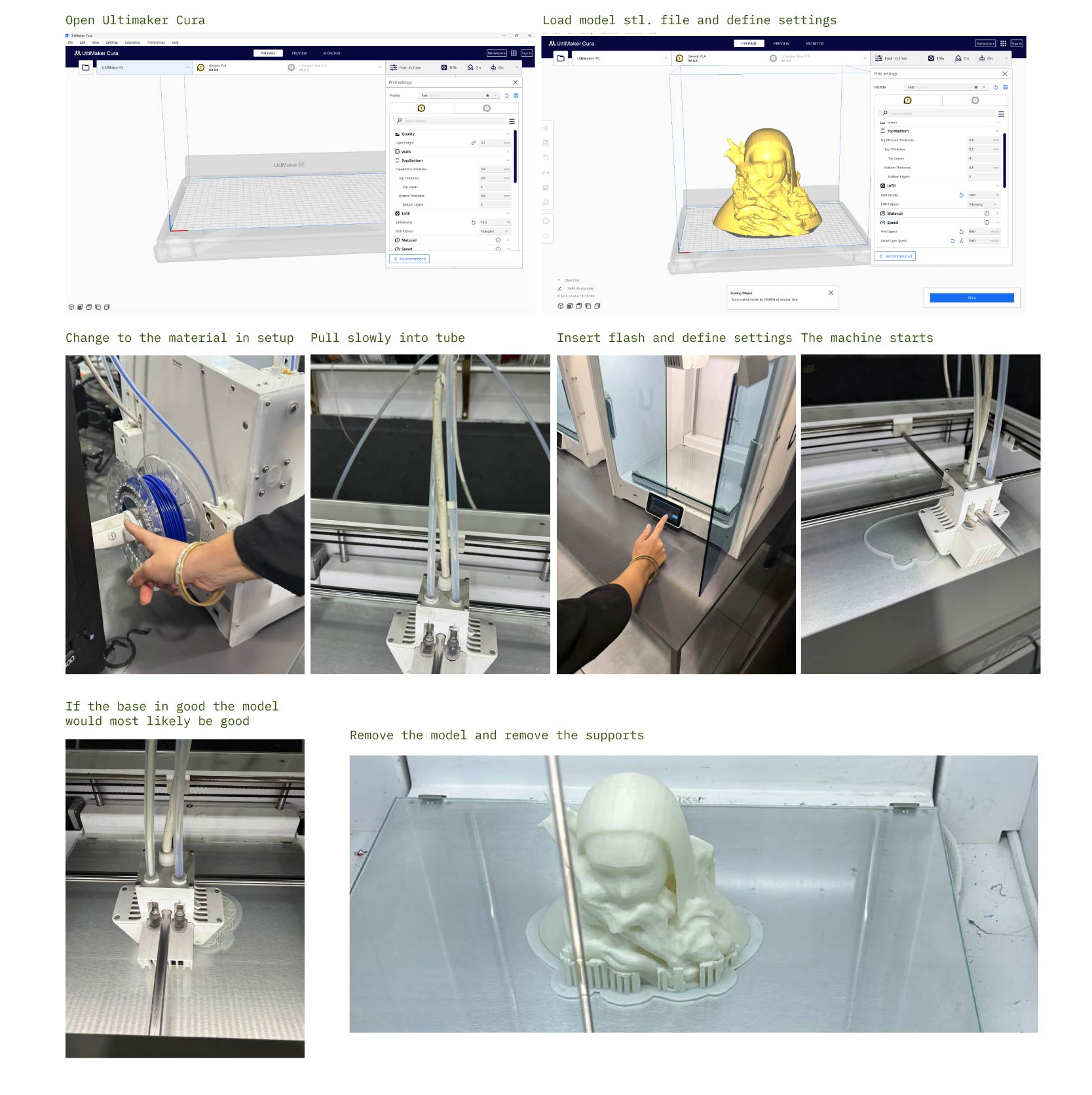 The Ultimaker S5 is a reliable and easy-to-use 3D printer designed for high-quality results. It has a large build area, dual extruders, and an intuitive touchscreen. We use Cura Ultimaker Slicer to slice the model prior to 3d printing.