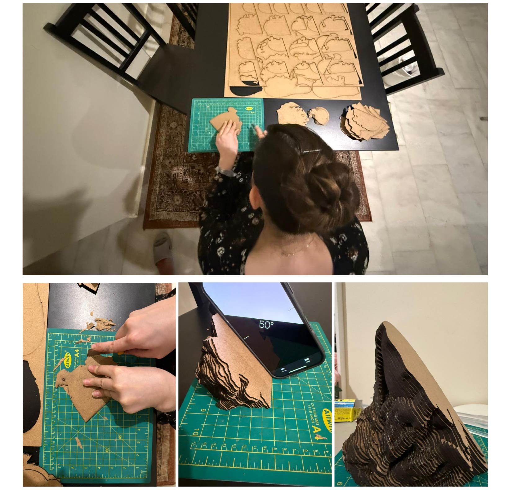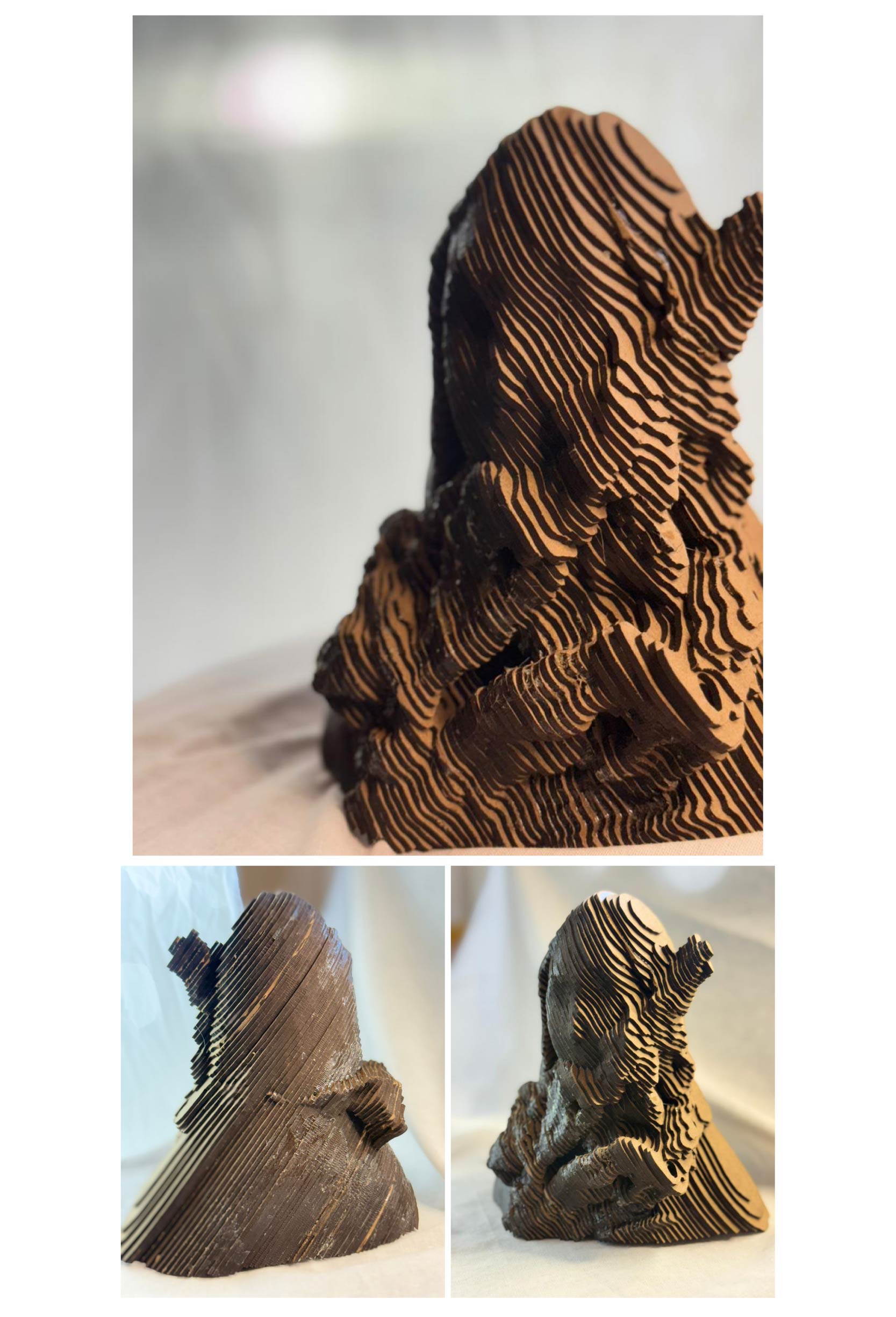 A beautiful mistake happened when I was assemblying the pieces together, which was me glueing to the opposite direction, however when I saw the final result I wasn't mad as the two models, the 3d printed and the laser cut became 2 mirrored complementary pieces together making an integral statement.