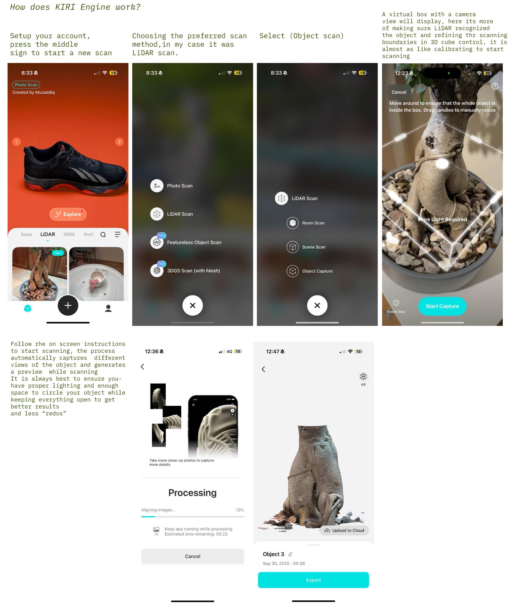 Use KIRI’s built-in tools or external software (like Blender or MeshLab) to trim excess areas, fill holes, and smooth the surface.