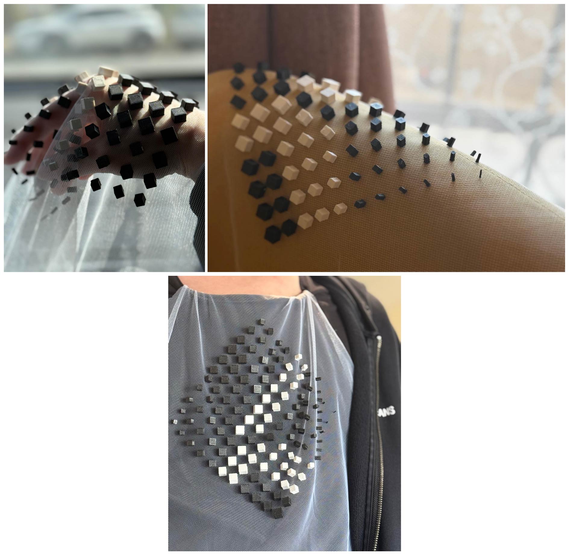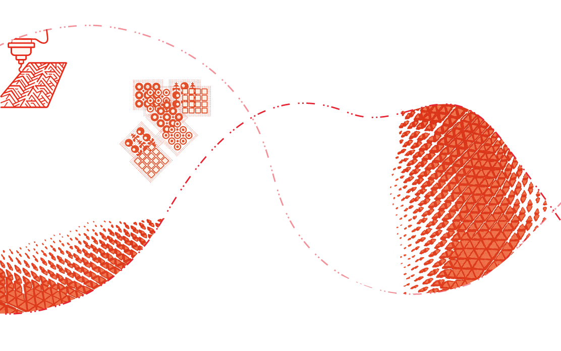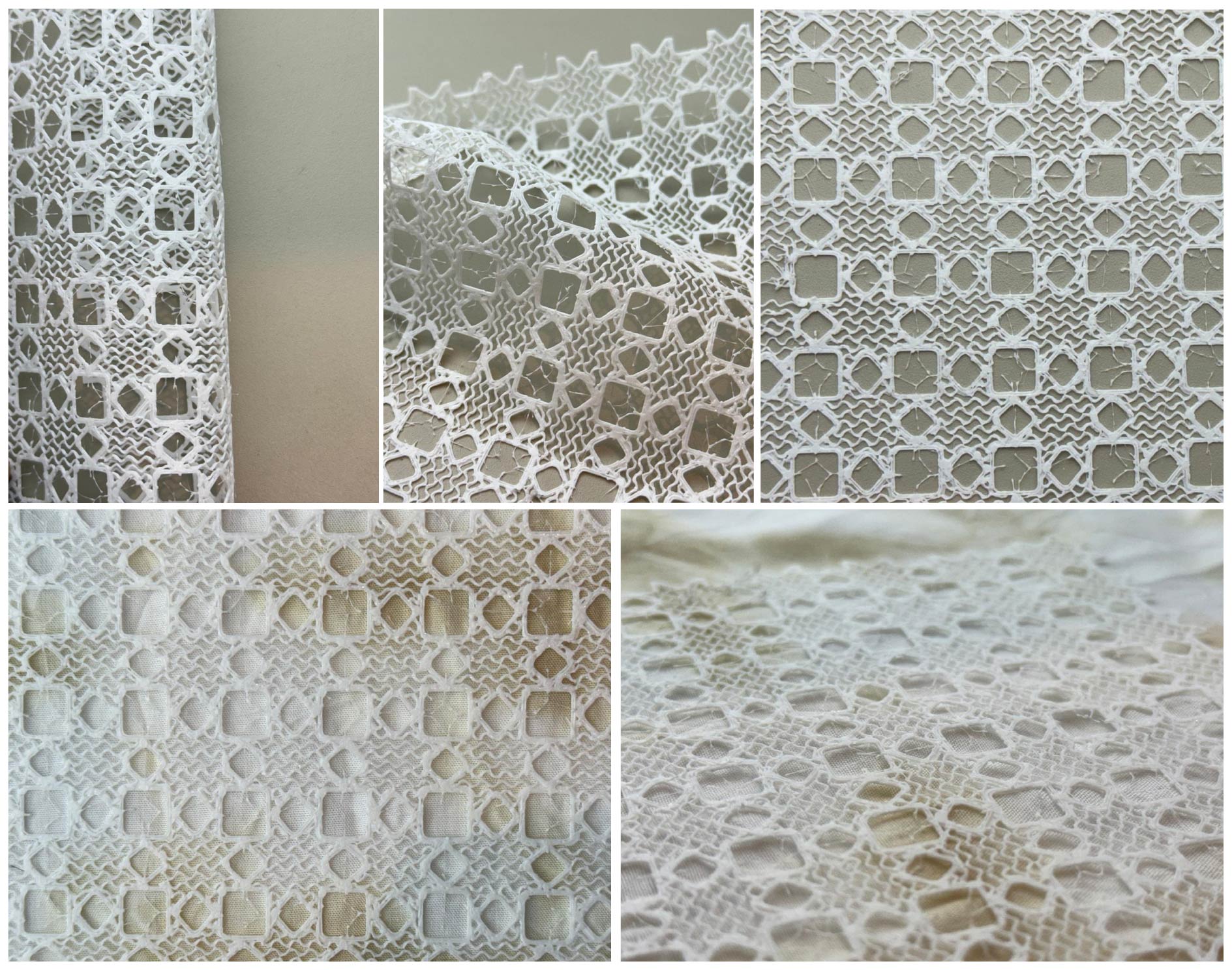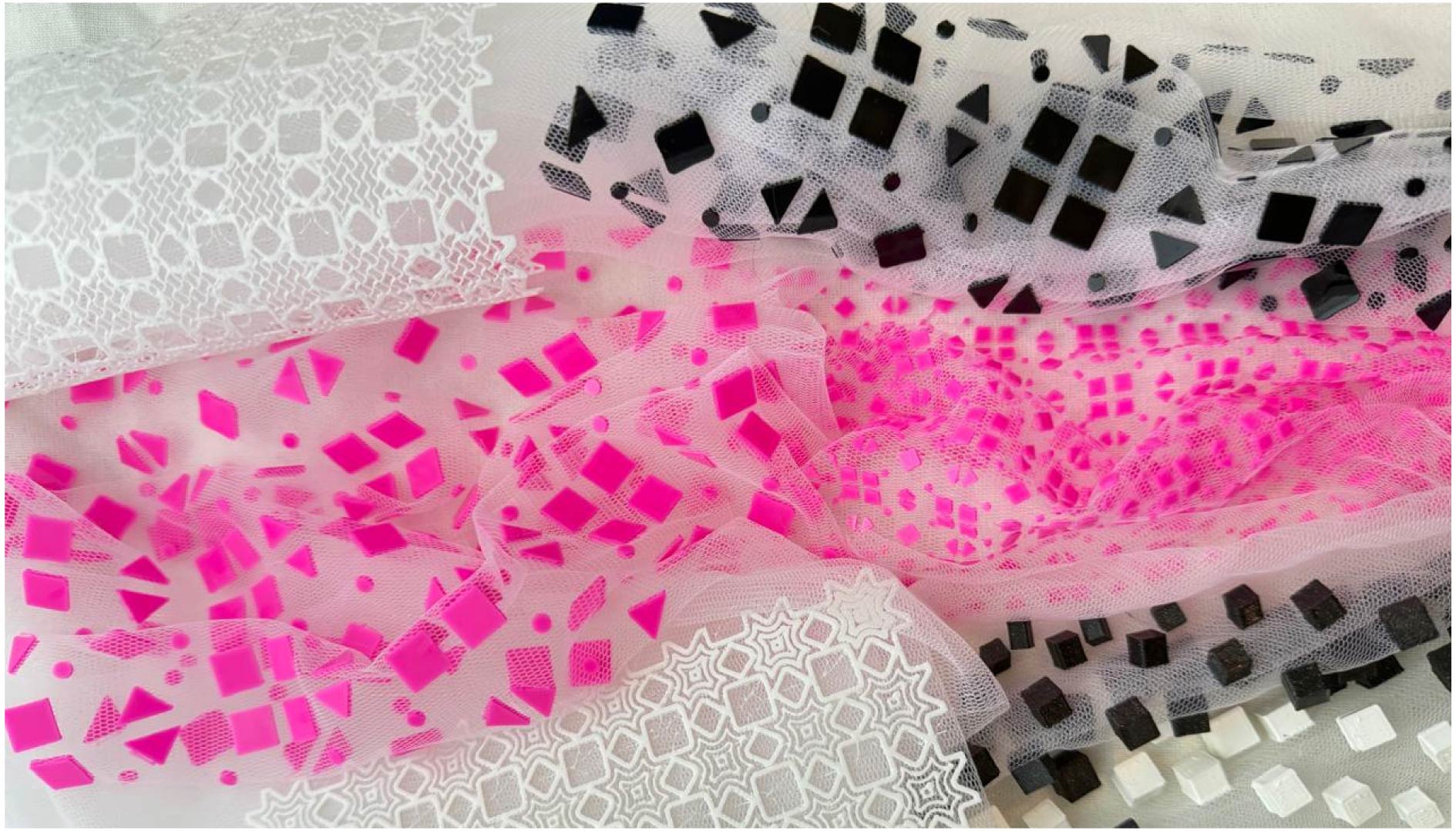 3D printing as fabric follows the same process, but without adding a pause or inserting fabric. The material must be TPU, and the geometry needs to be interconnected so the print can function as a continuous, flexible structure.
