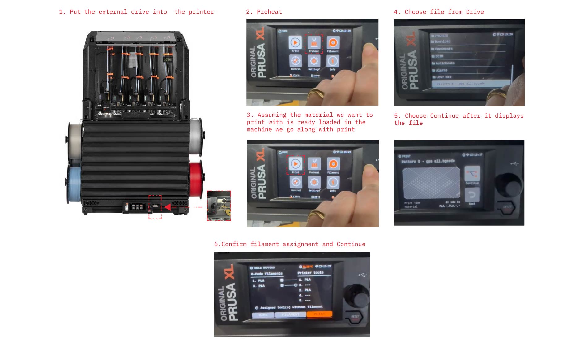 Confirm filament/tool assignment if prompted (which tool/nozzle will print).