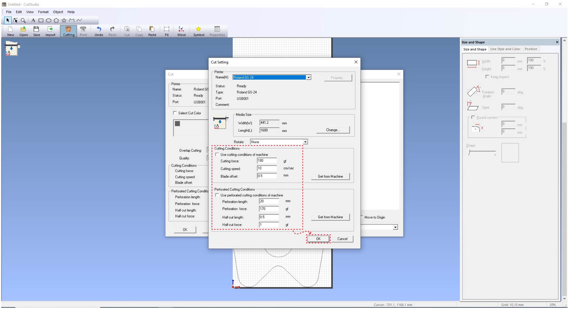 Send cut job from software
