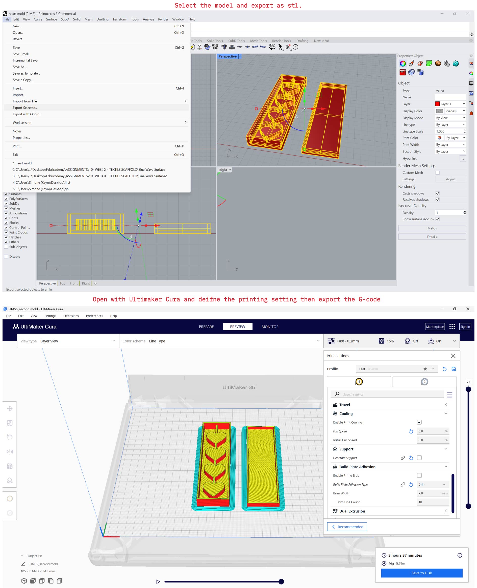 Step 1: Design the actuator: Design a mold that includes internal air chambers (ribbed channels) and a designated inlet port for air injection, within class experimentation we used some of the previous students 3d printed molds, however in my assignment workflow we will get into more depth how I designed my mold using Rhino and Illustrator.