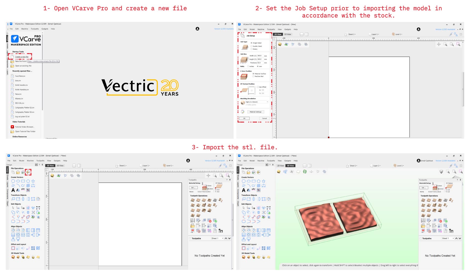 Prepare the Job Setup prior to importing the model in accordance with the stock dimensions and press ''Ok''.