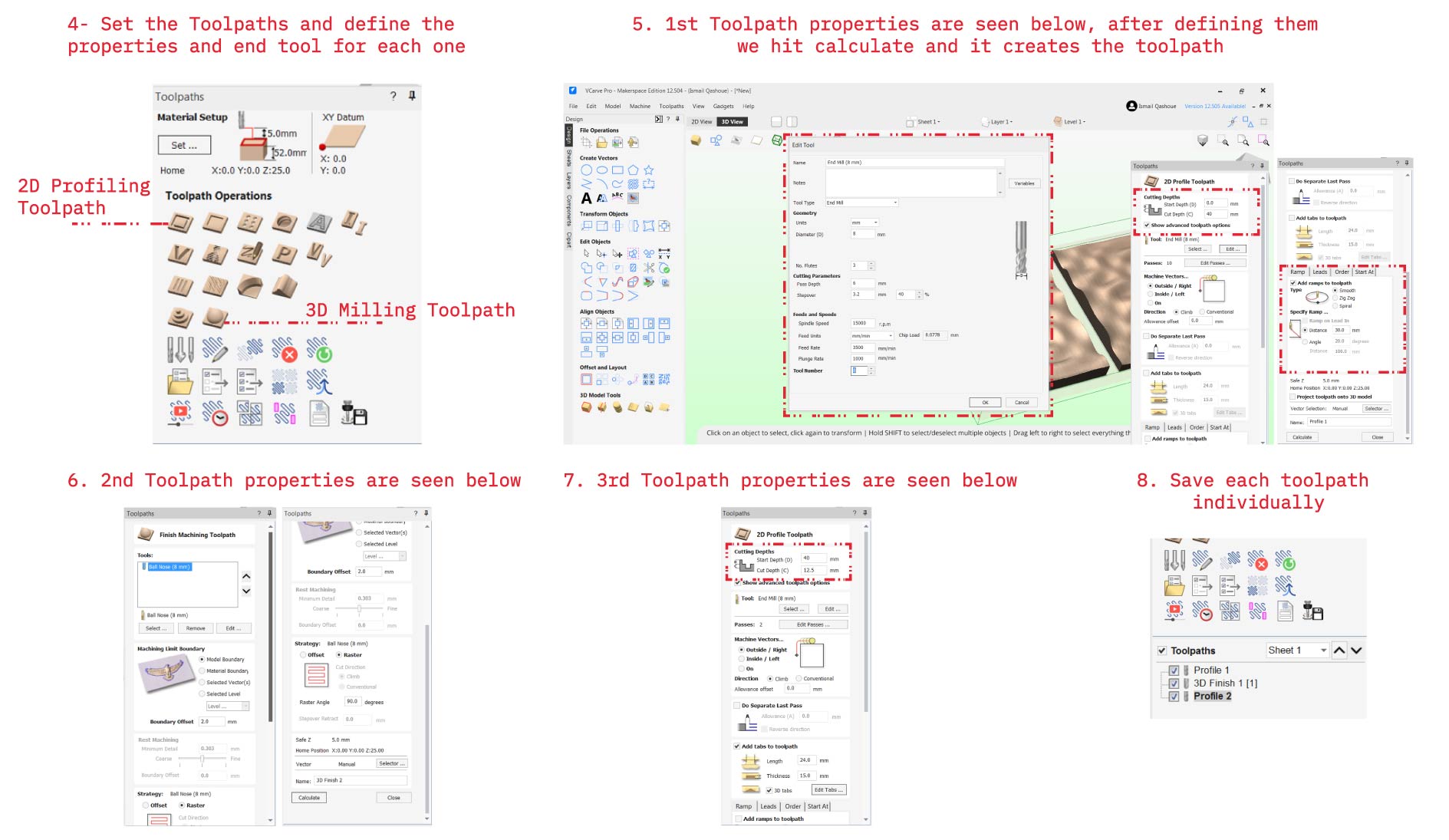 VCarve Pro is a user-friendly CNC software for creating precise 2D, 2.5D, and 3D toolpaths. It allows you to import vector files or 3D relief models, define operations like profiling, pocketing, V-carving, and 3D roughing/finishing, and preview everything before cutting.