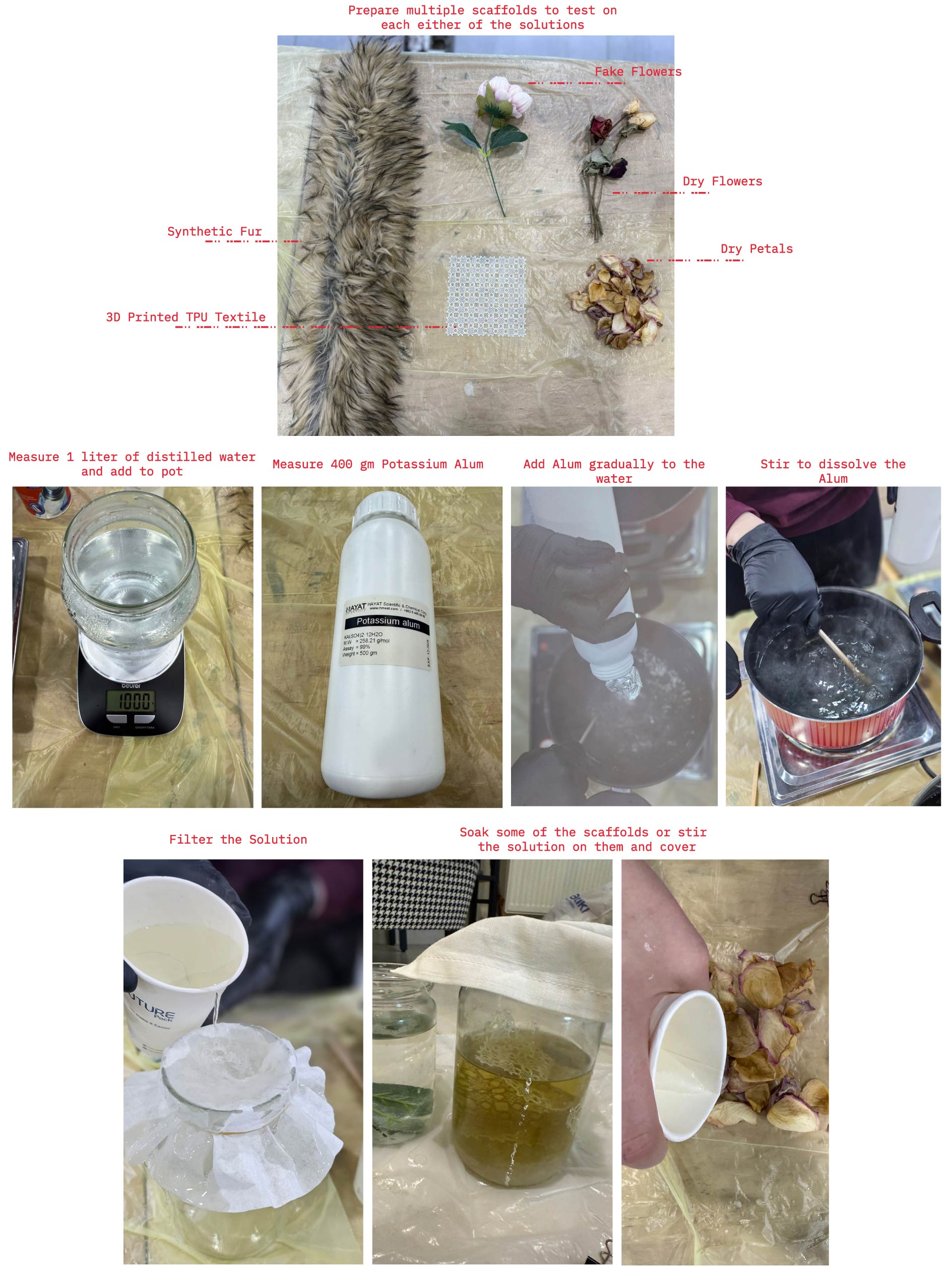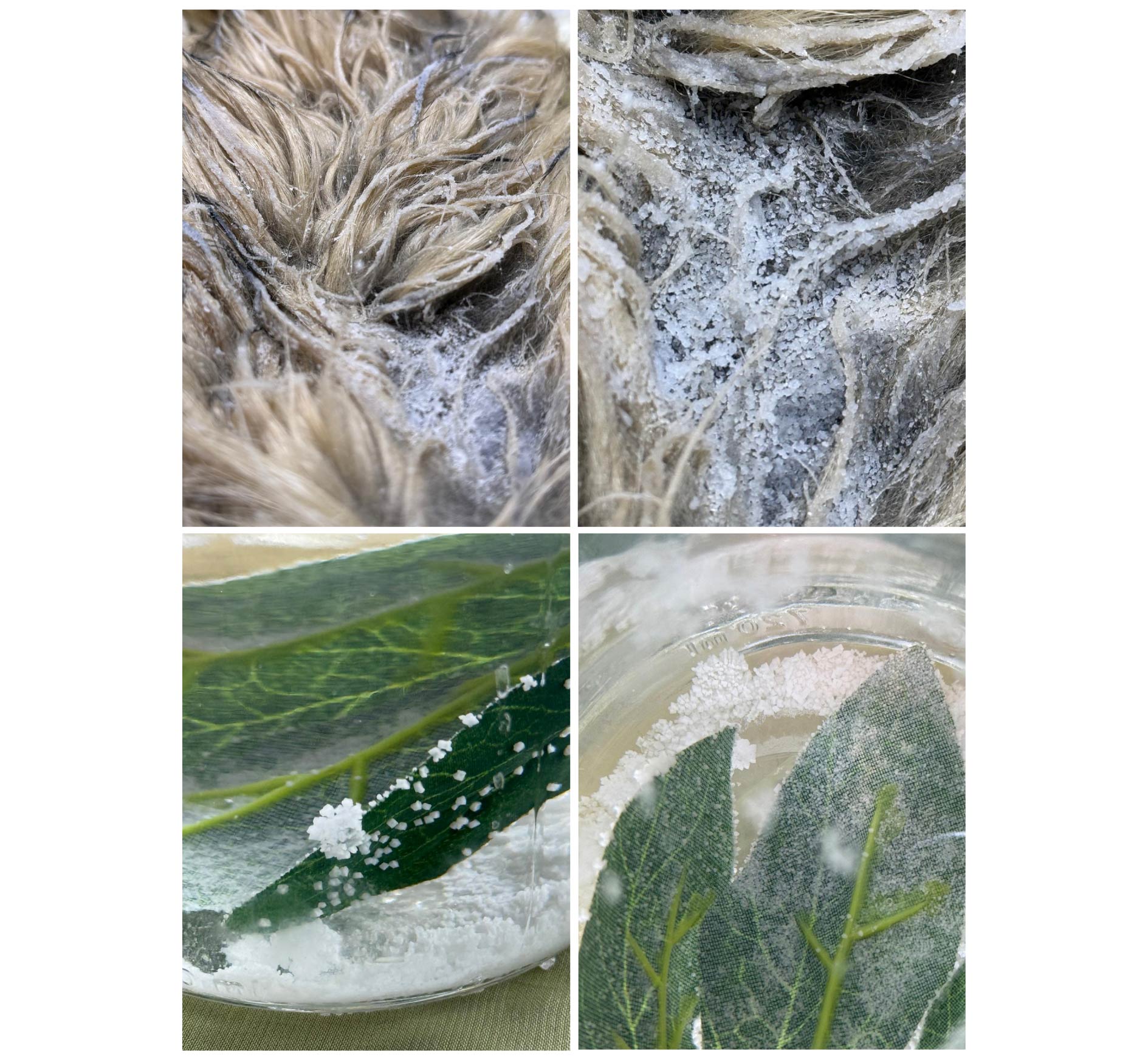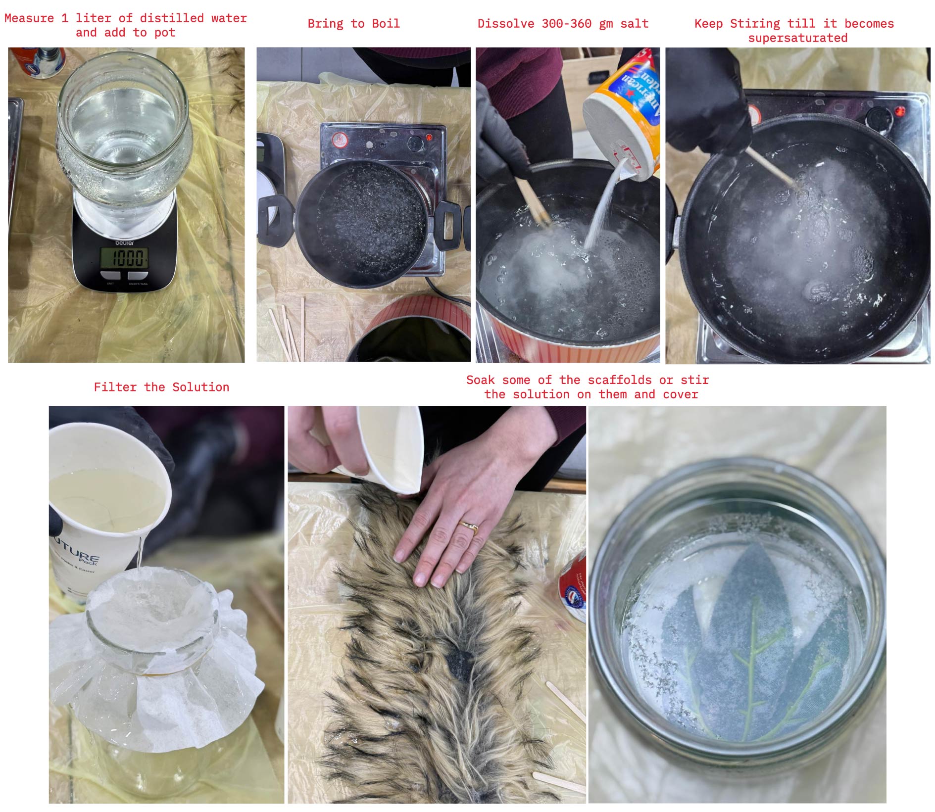 Step 5: Suspend or place the textile scaffold into the solution and let it rest undisturbed so salt crystals can start forming on the fabric.