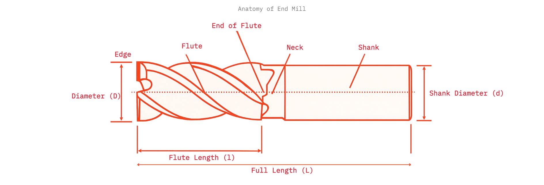 The End Mill is a cutting tool used in CNC milling machines to remove material by rotating at high speed and cutting along its edges. Unlike a drill bit, which only cuts straight down, an end mill can cut in multiple directions.
