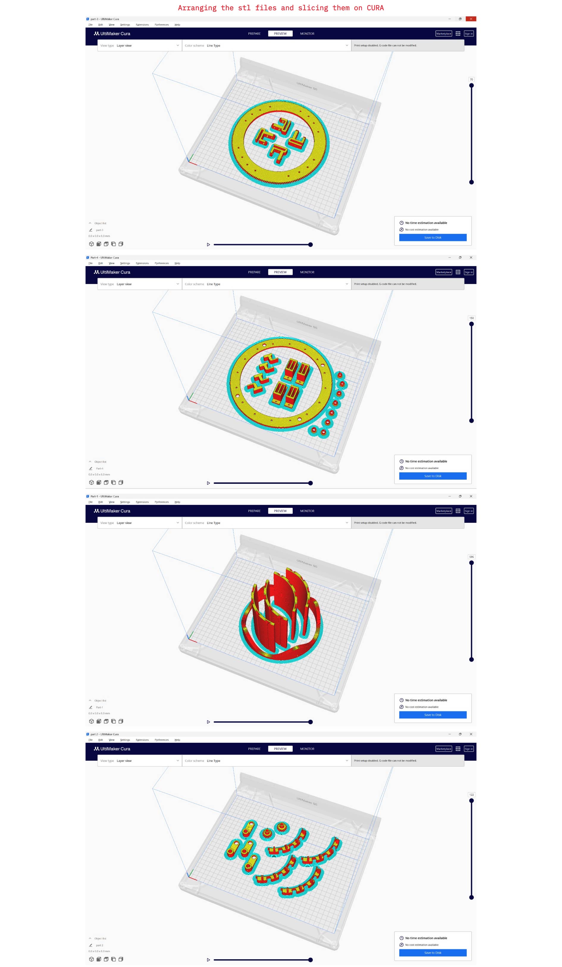 Started off by printing all the Stl files from the Repository, arranging and slicing the files on Cura Ultimaker.