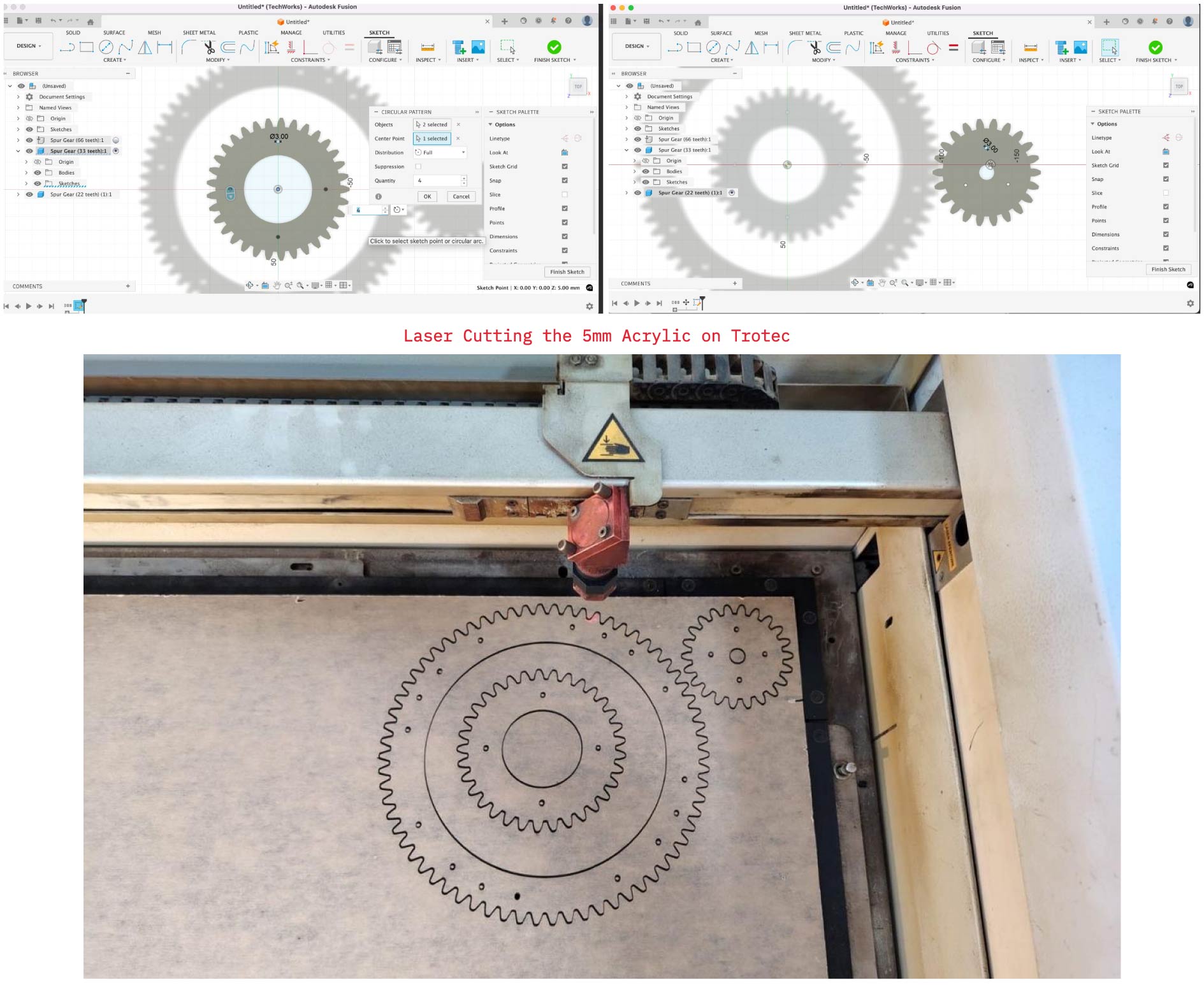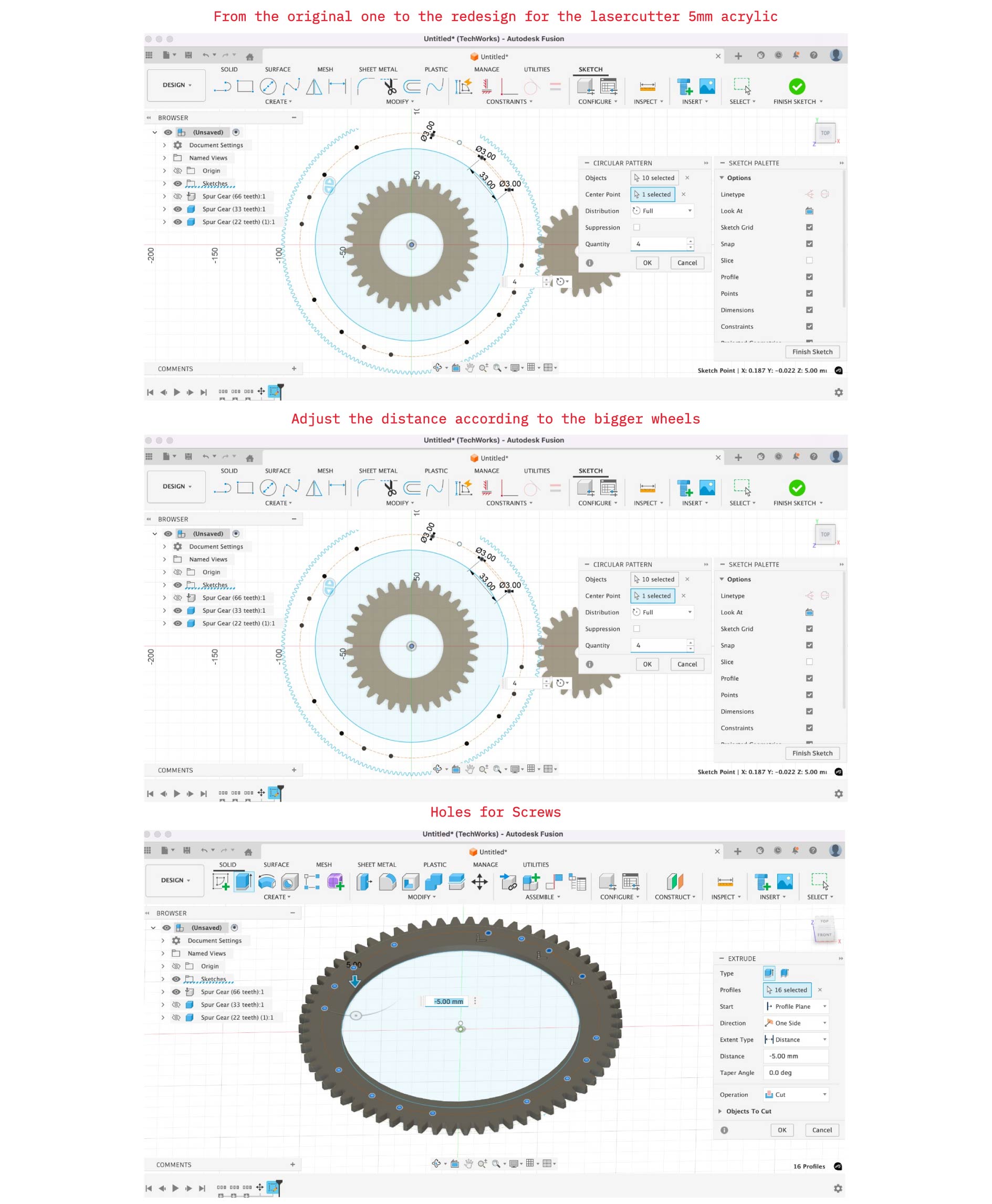 Prepare gear design for laser-cut: