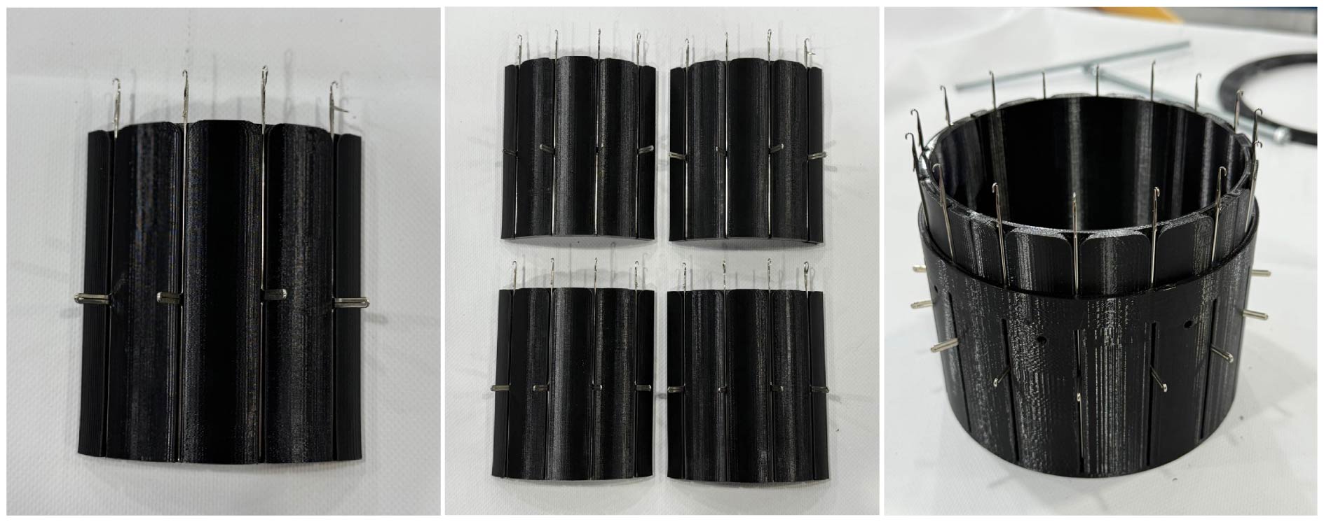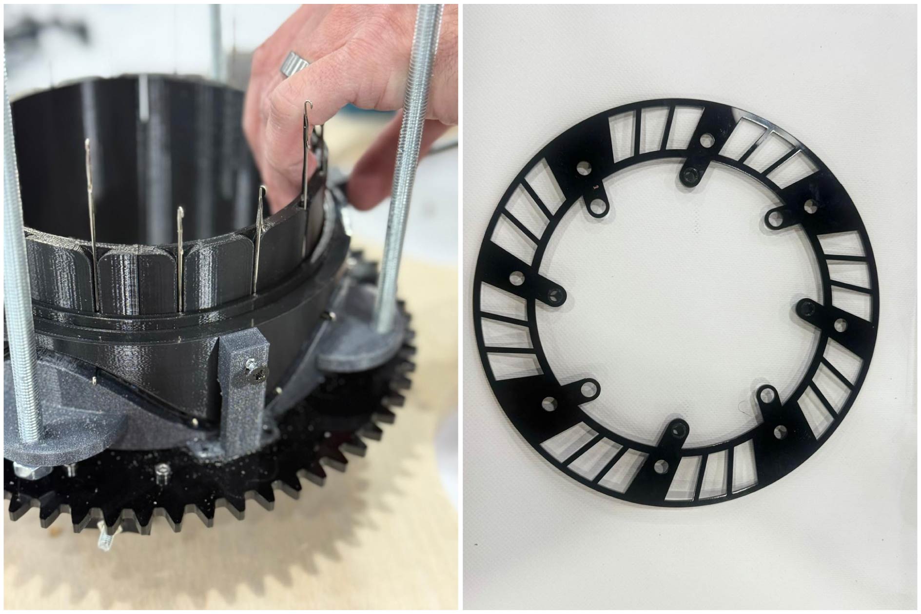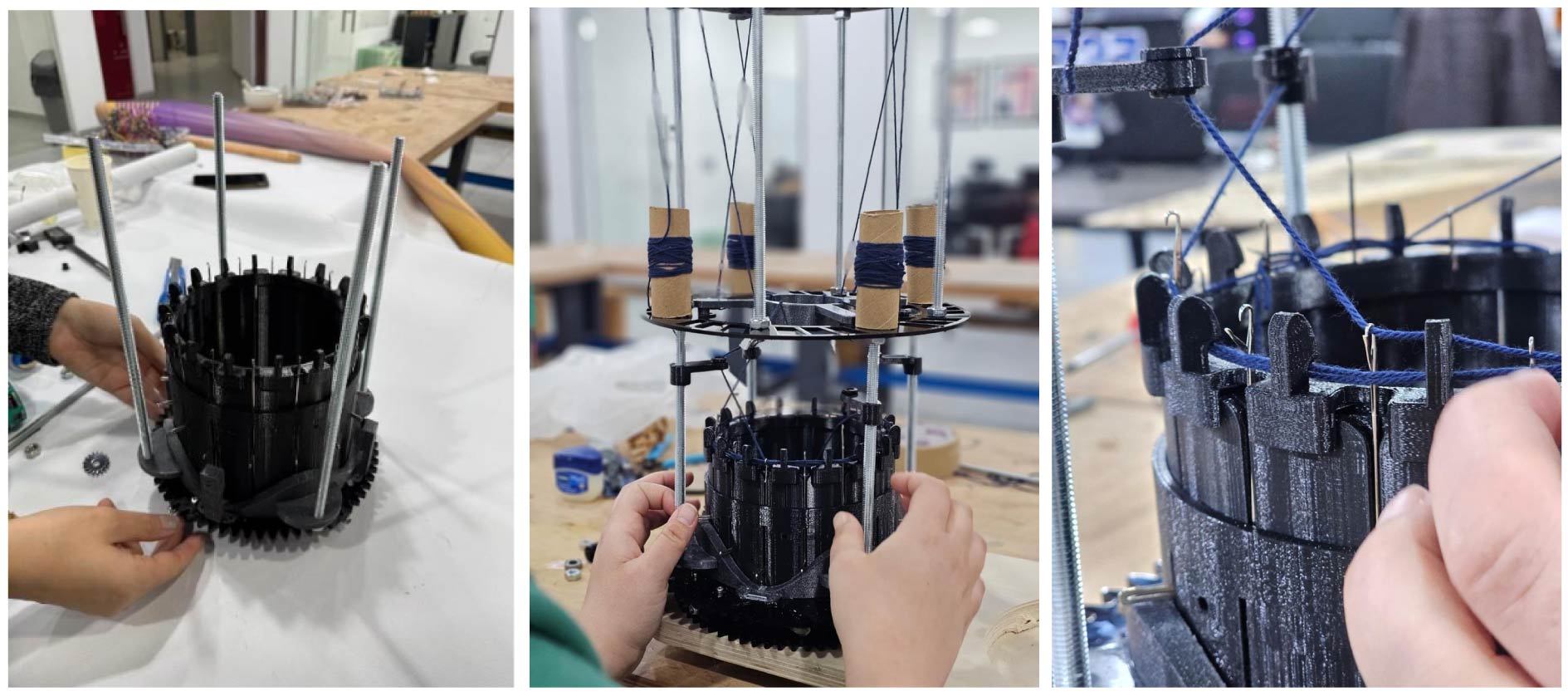 Our objective was to deconstruct the mechanical logic of knitting by understanding how synchronized movements, guide profiles, and needle geometry organize linear strands into three-dimensional fabric. The project applied product design and reverse engineering methods within a collaborative team, working from an open-source digital design back to physical reality. It required adapting to real constraints, time, files, materials, and available equipment, while engaging in rapid problem-solving, collective decision making, and resource management. This process built technical awareness and enabled us to adapt a global open-source machine design to local conditions.