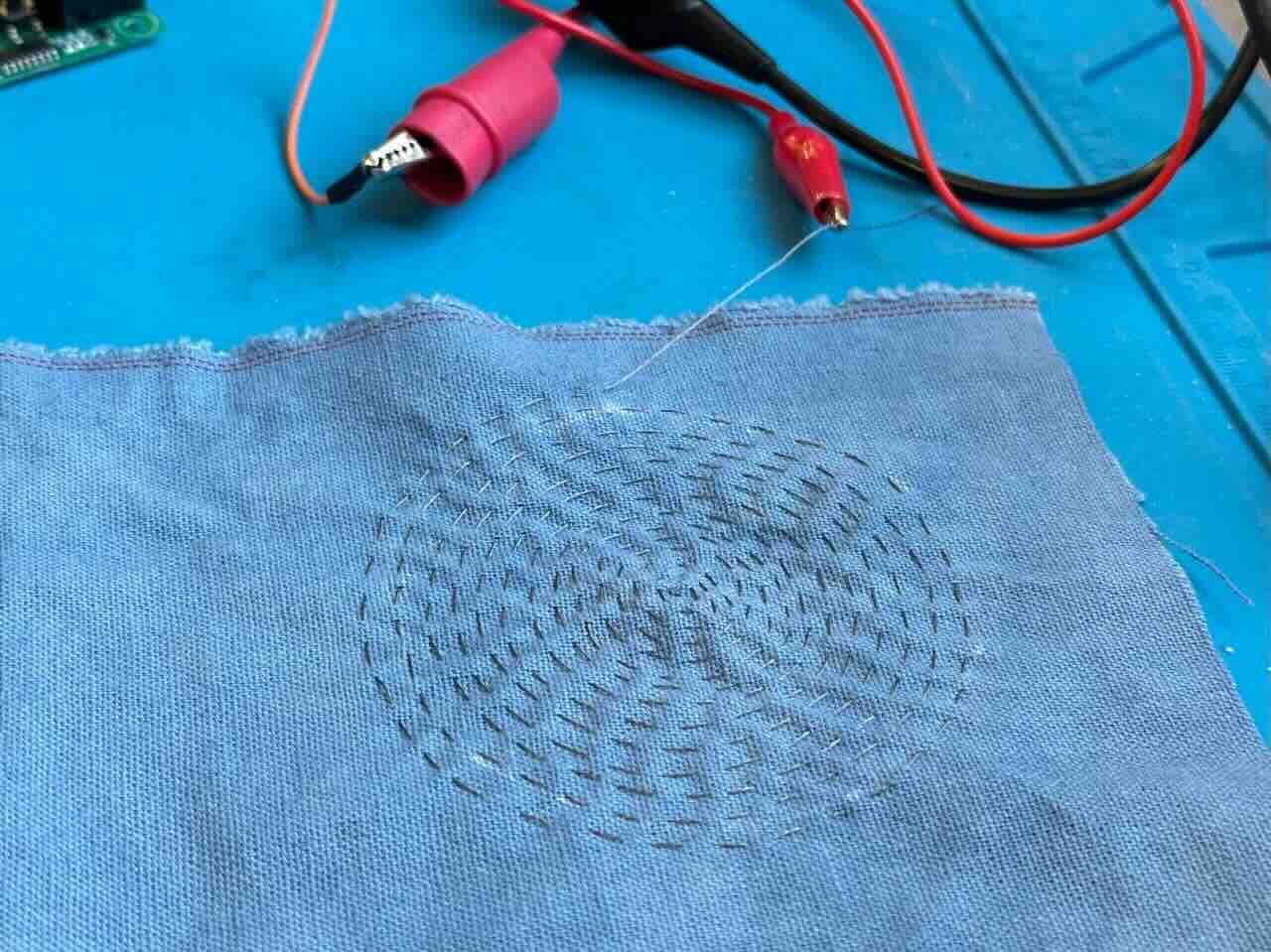 Once all the connections were done and we supplied it with power, the embroidery started heating up! It was a slow rise in temperature. Something that felt controllable and safe.