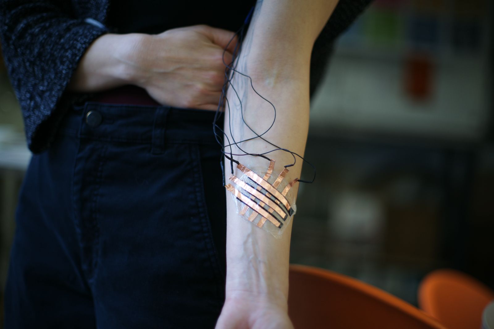It is a concept and an ongoing development of how we can wear circuits, sensors and bioelectronics directly on our body. They are built to send signals, to read different datas (for example pH level of your skin, heart rate etc), to track motion and even as interfaces! It is vital in the medical field, for patients who need to wear trackers for example for long periods of time. Due to their lightweight and small structures, it is easier to wear and feels more natural.