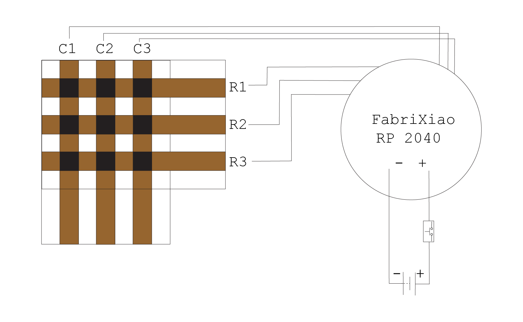 I initially tested the grid using the USB port on the FabriXiao RP 2040, to make sure it works.