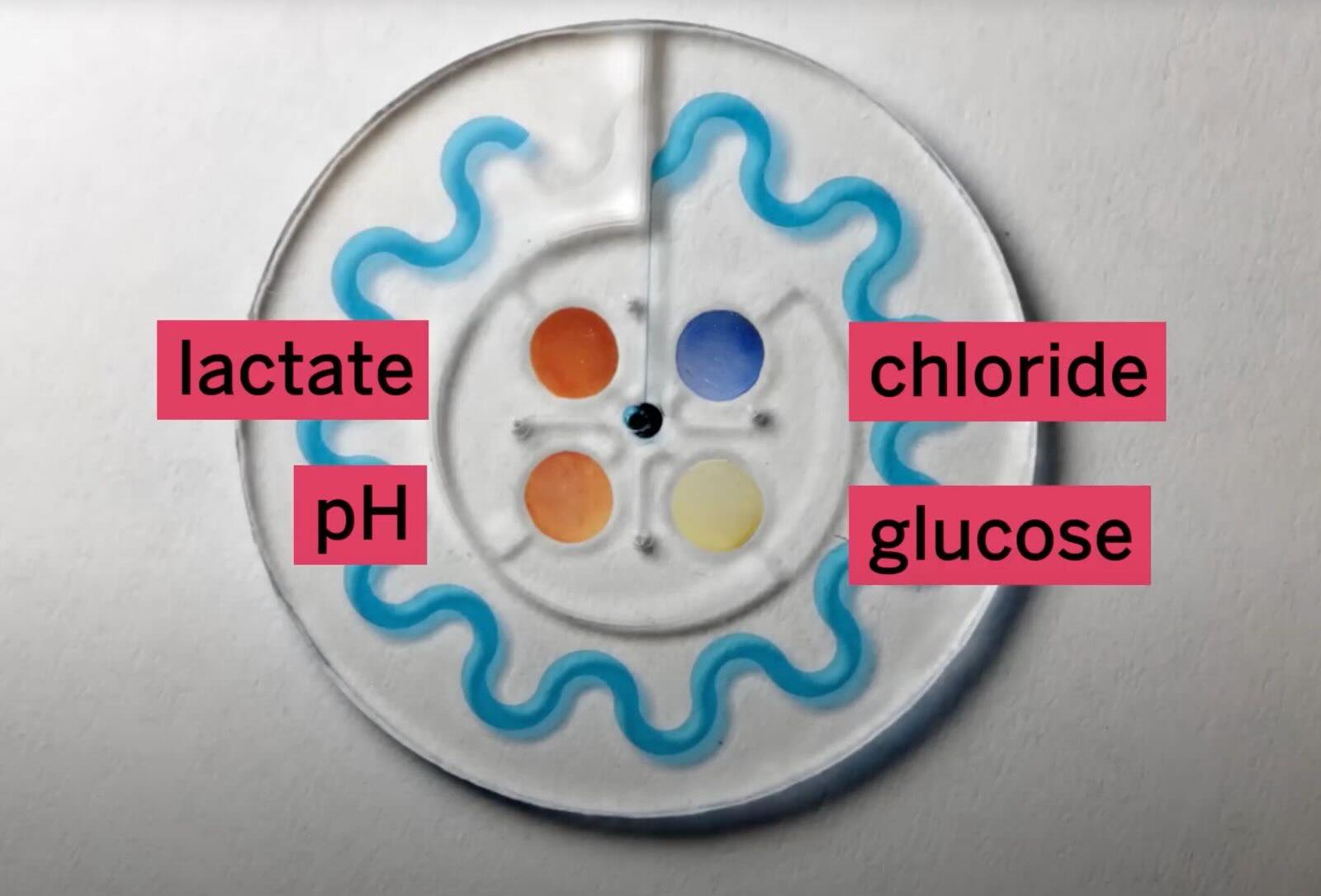 Another beautiful design is the microfuidic (sweat-sensing) skin patch that changes colour in accoradnce to different components in your sweat. It is small and stretchable, easy to wear. The data collected can be analyzed through an app in your smartphone.
