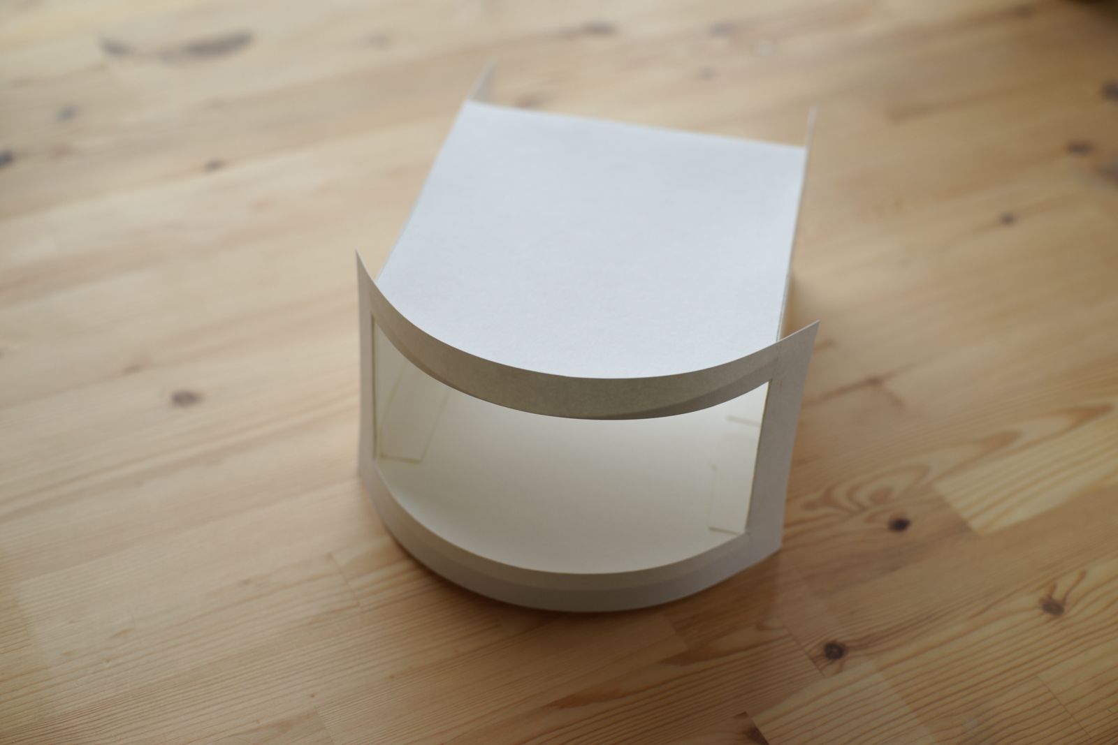 In the images below, you can find the first prototype of the Colour Chamber and how it can potentially be. I initially made it with heavy weight paper, for the simple reason of that's what I had in my studio. However, after making it and using it I am drawn to keeping it as paper. It could be a paper cutout which you can fold, just like a box. This way it could essentially accompany the "kit" for those who will participate in the discovery of the natural colours.
