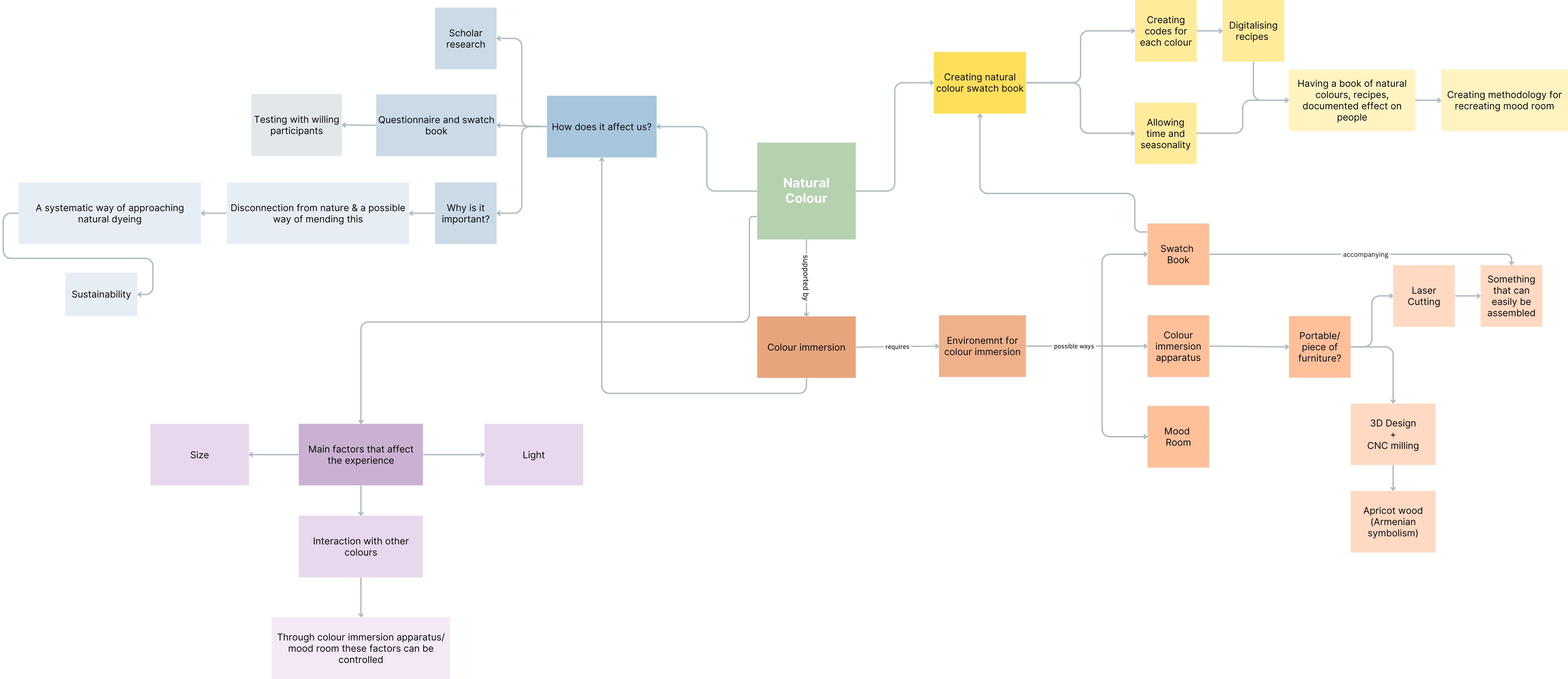 This choice of colour will give me a chance to initiate a small ecosystem. From a variety of dyestuff (roots, petals, peels, hulls and pigment), to a variety of chromatic density (bright, muted, deep, pale) and emotional temperature.