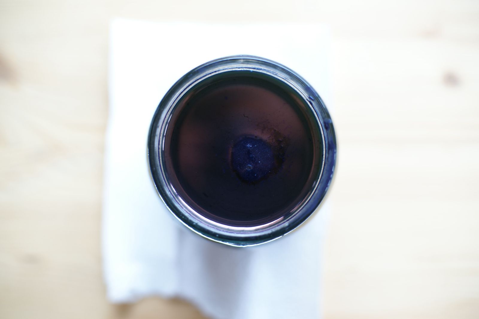 While both dye vats have similar fermentation process, I observed that the chemical dye bath yielded deeper and more even shades, than the fructose dye vat.