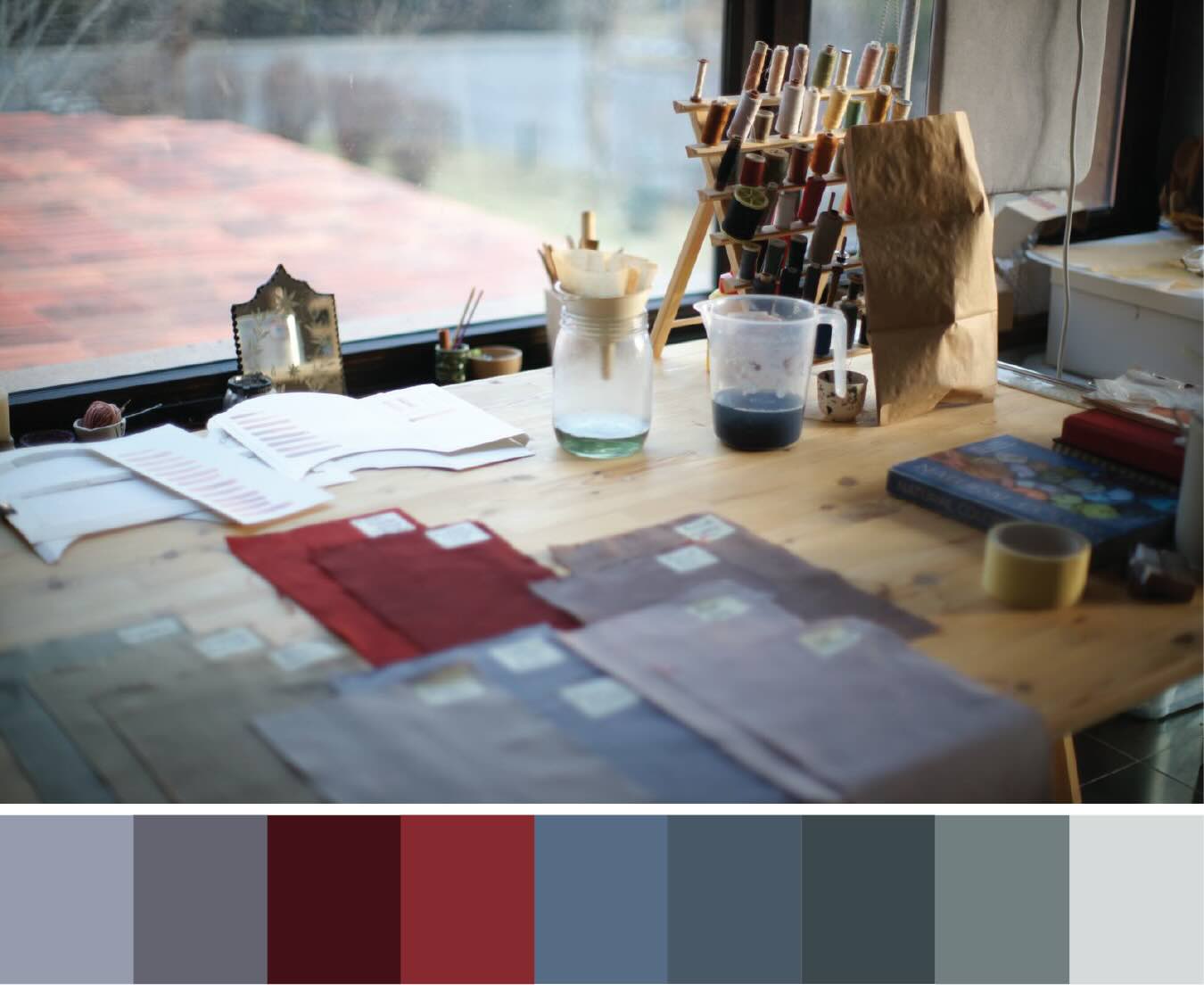 A visual interpretation of the project, from colour extraction and application, showing details from the process of creating colour, to the final mood room.