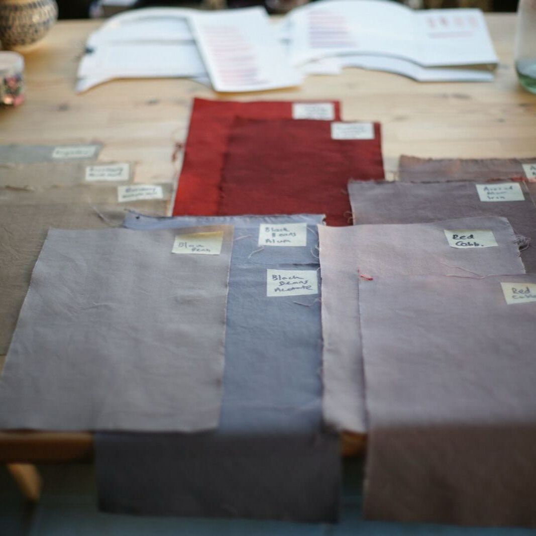 During the project development, I worked with linens and cottons to create the swatches for the colour immersion interviews. However, for my final piece I have decided to work with taffeta silk. I like how it holds its structure and the way that silk takes up natural dyes. Its natural shimmer gives the colours even more depth, pulling me close, like moth to a flame.
